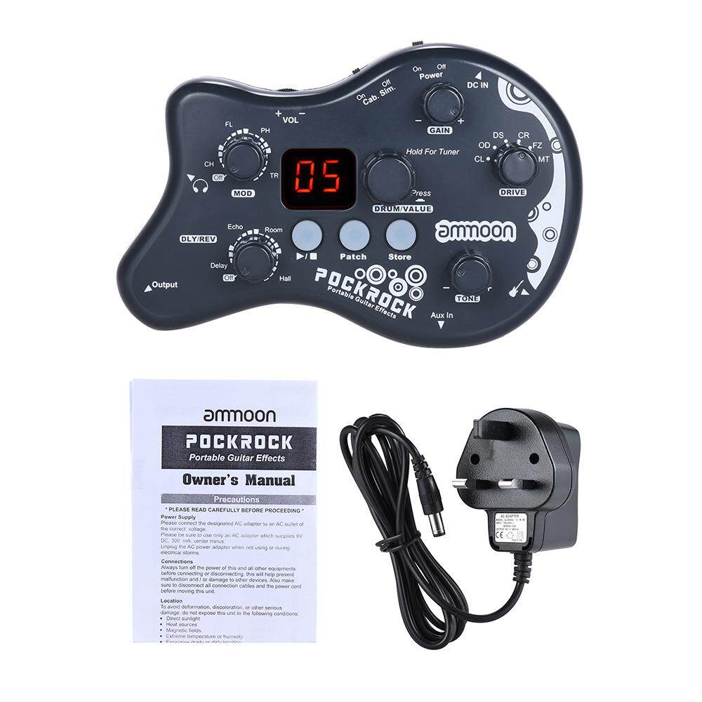 ammoon PockRock Portable Guitar Multi-effects Processor Effect Pedal 15 Effect Types 40 Drum Rhythms Tuning Function with Power Adapter Dark Grey uk plug