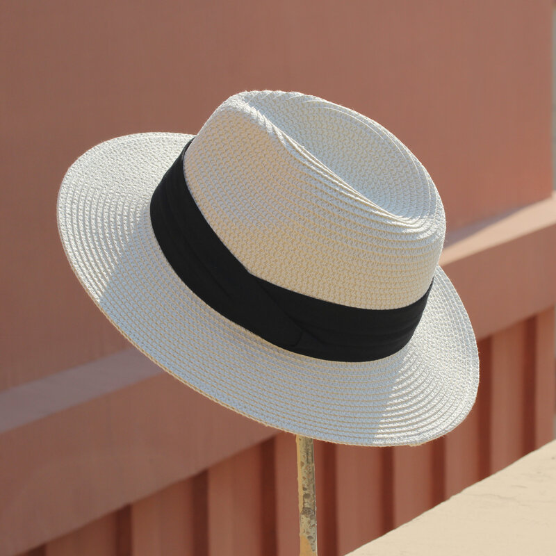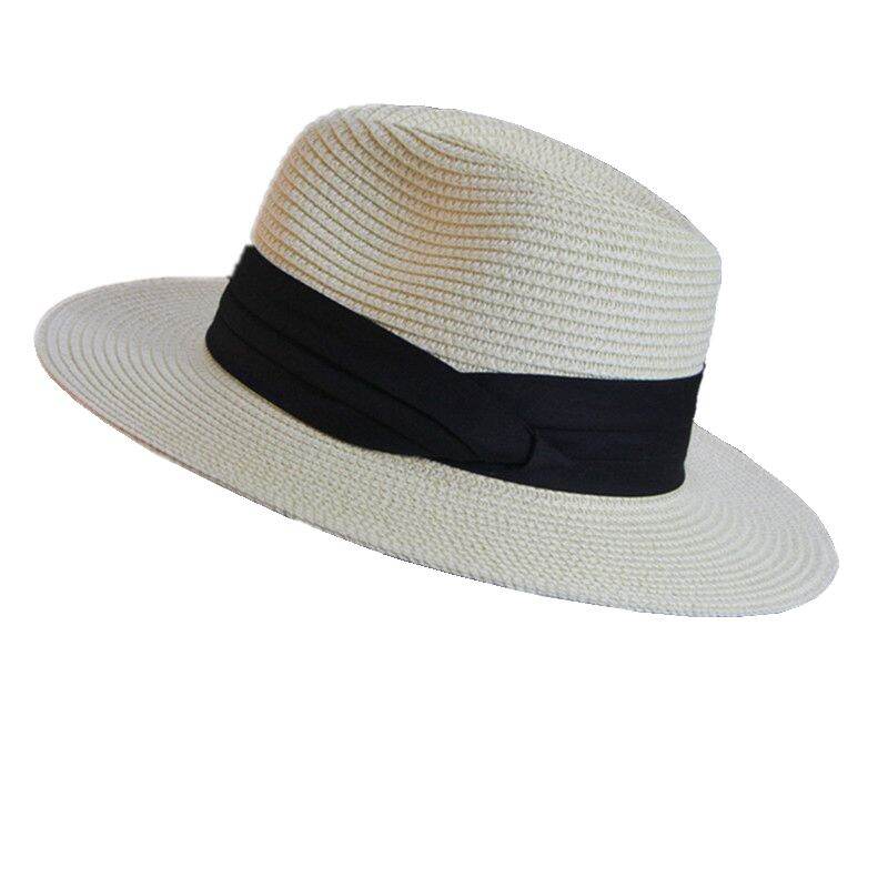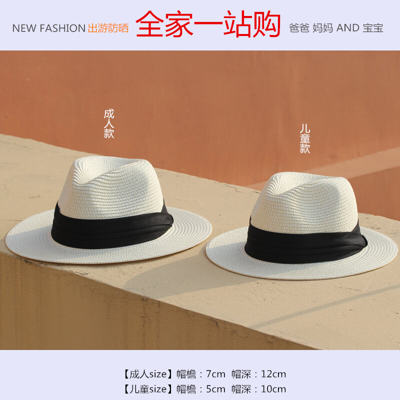 Summer Foldable Black and White Flat Wide Brim Male and Female Parent-Child Straw Hat Panama Top Hat Sun Hat Couple Beach Hat