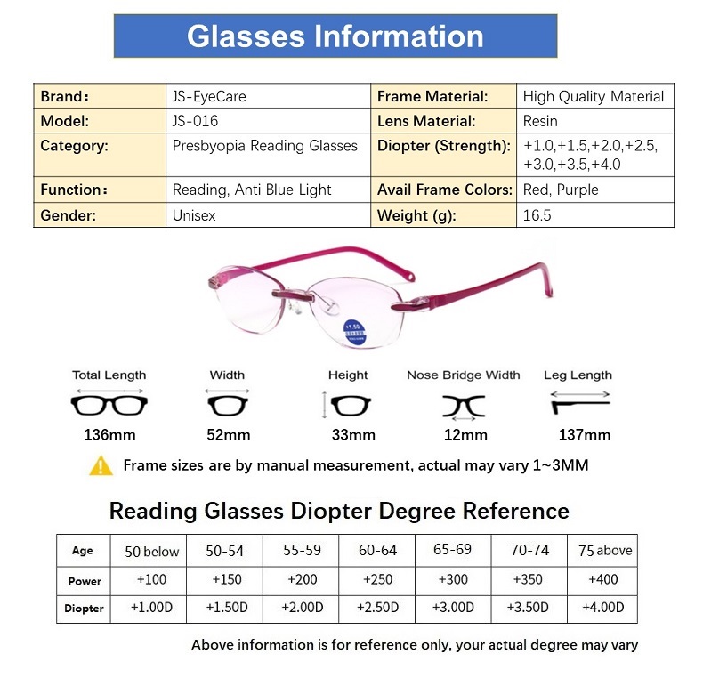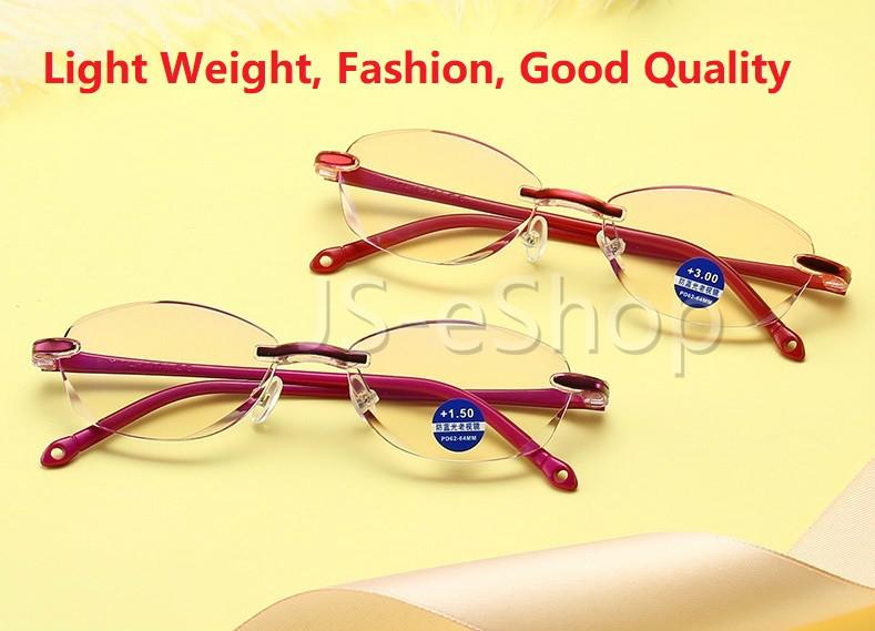 Reading Glasses Anti Blue Light Eyewear Protection Lenses Frameless Diamond Cutting Eyeglasses for Women Men Presbyopic Glasses +1.0 To +4.0