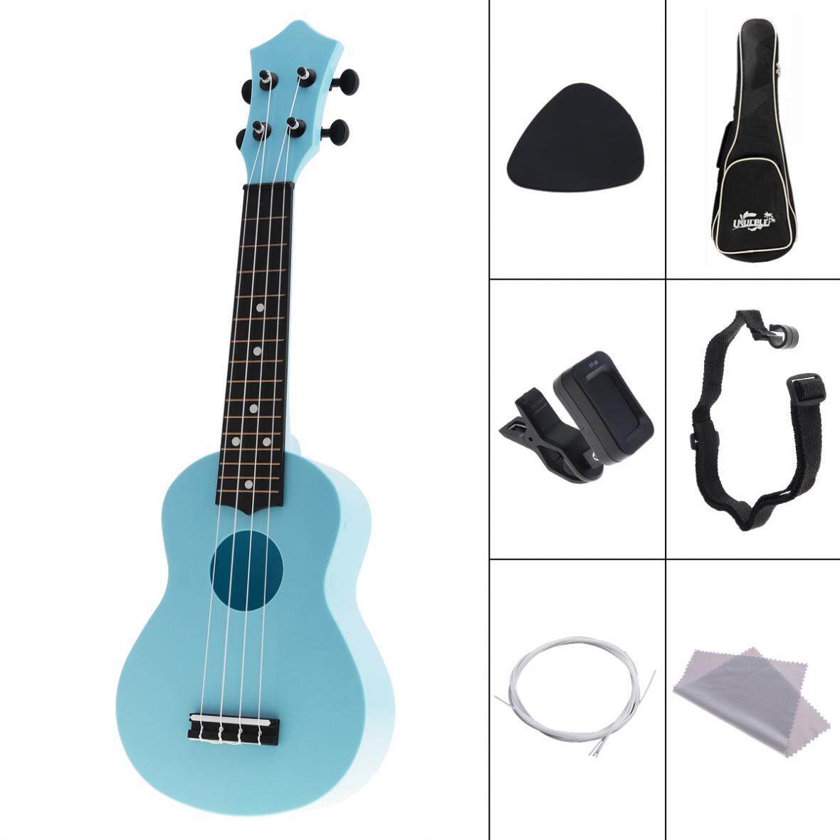 SLADE 21 Inch Full Kits Soprano Ukulele + Picks + Cloth + Strings + Strap +Tuner Set + Bag for Kids / Beginners