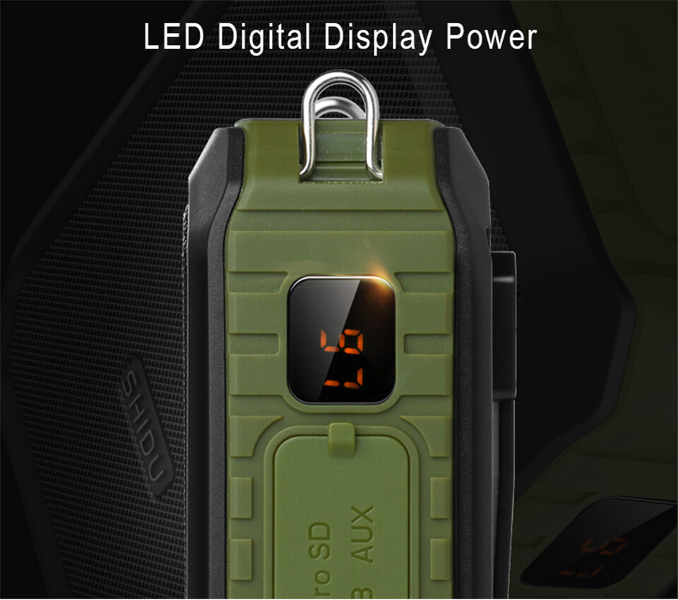 1. The New Born Waterproof Megaphone;2. Power Display Shows Present Electricty Percent;3. Bluetooth 4.2 Chip, Singnal Transmission More Fast And Stable;4. Mobile Charger/ Power Bank Function;5. Dual Voice Coil Speaker, Maximum Peak Up To 18W;6. IPX 5 Waterproof7. Two-Color Injection Molding, More Good Hand Feeling8. Super MP3 Audio Encoding Technology --- Support TF Card & U Flash Disk;9. Support AUX --- Can Connect With PC And Work As Speaker;