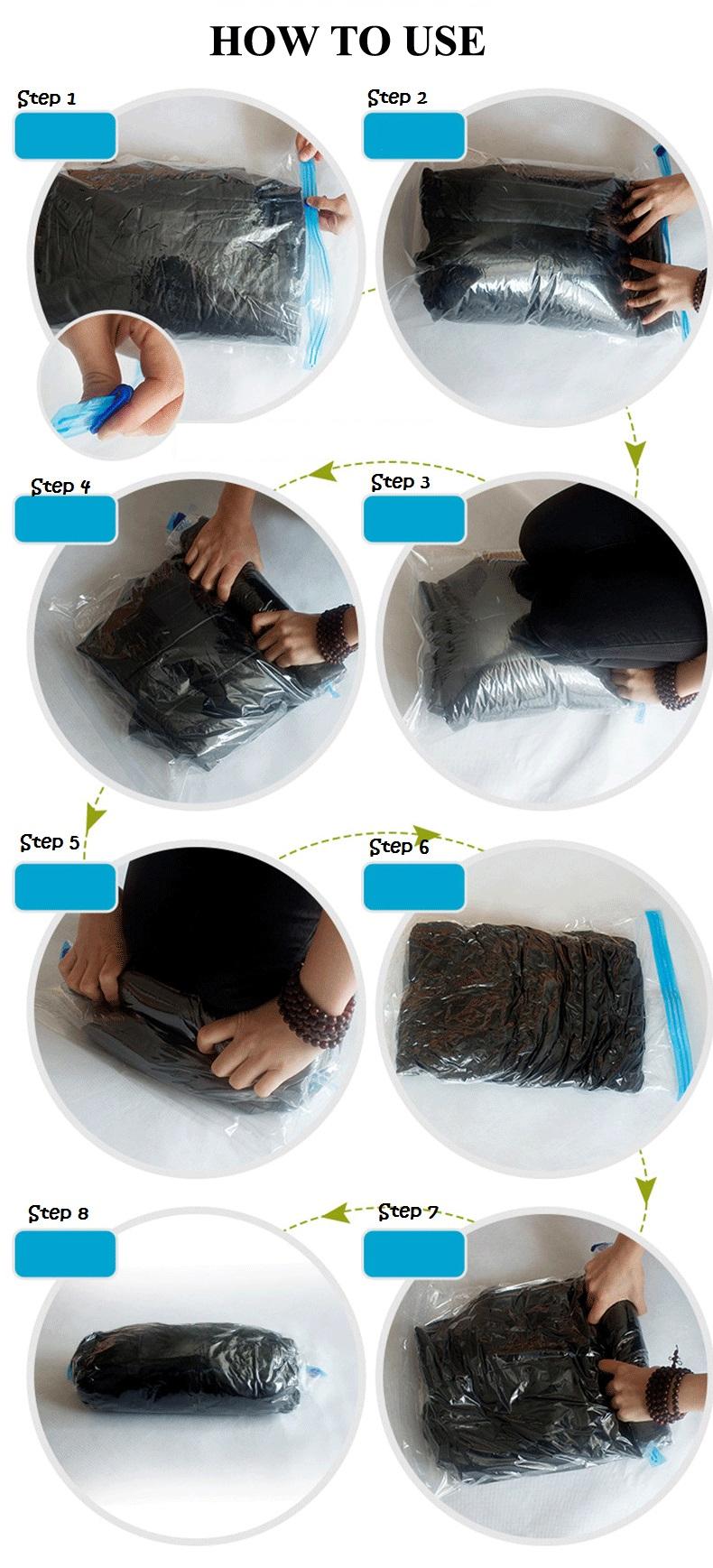 [SG Local Seller] ( 8 PCS ) OF Hand roll seal bag/Vacuum Storage / Clothes ★Easily without vacuum!★Just Roll it by Hand!/ Travel [ By Kim Hyeon ]