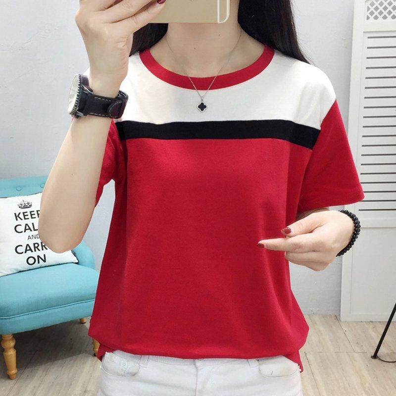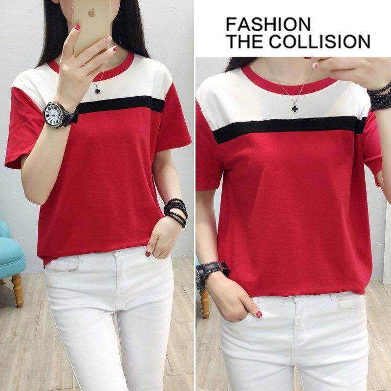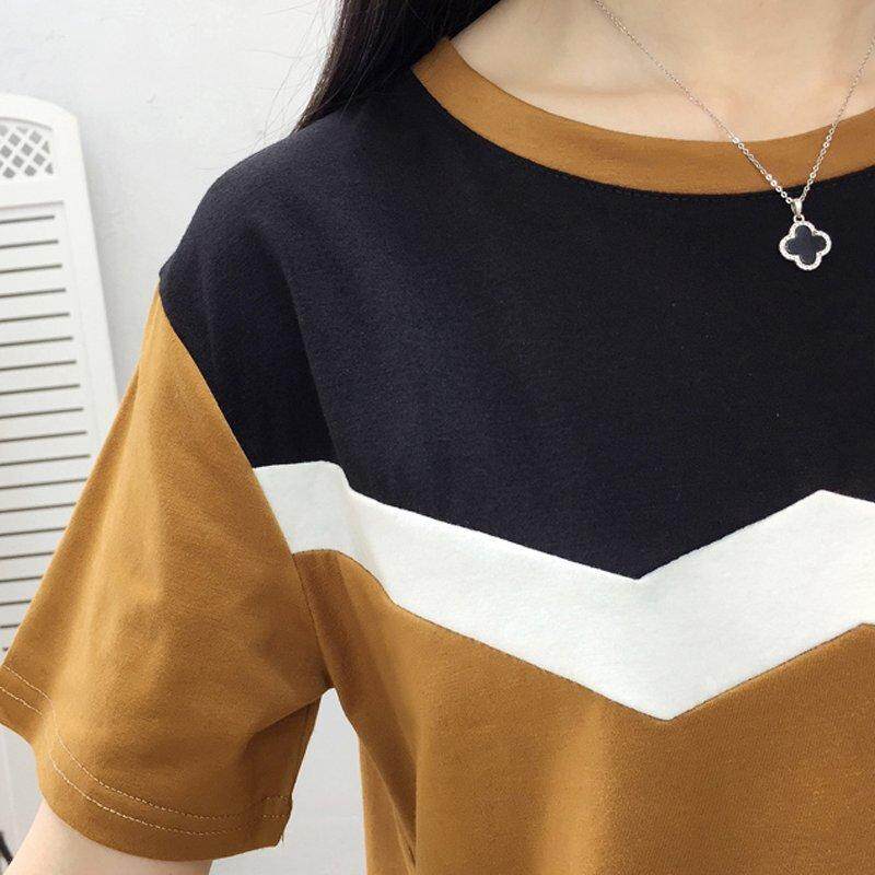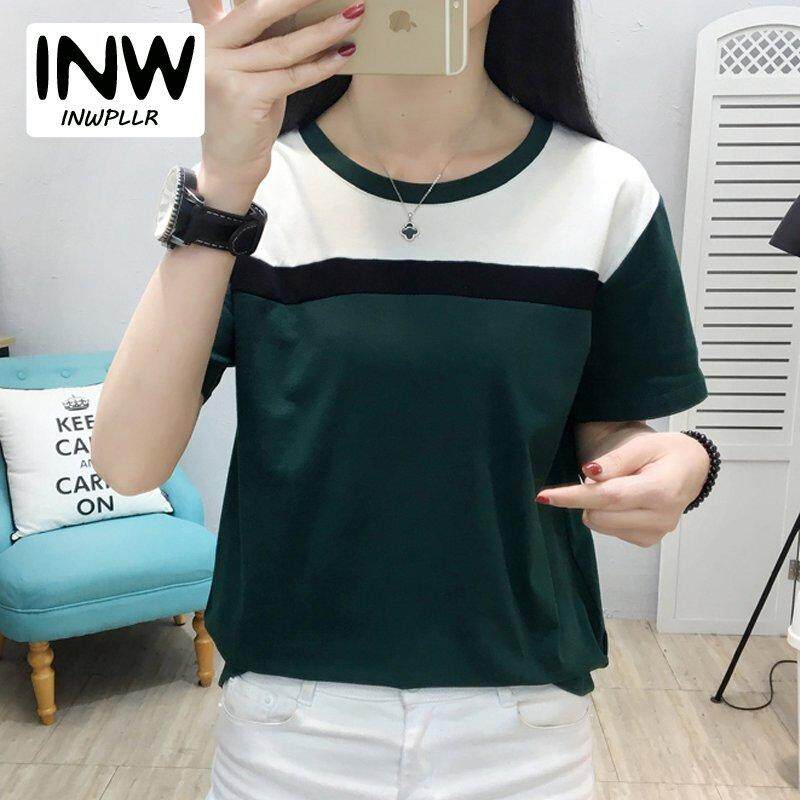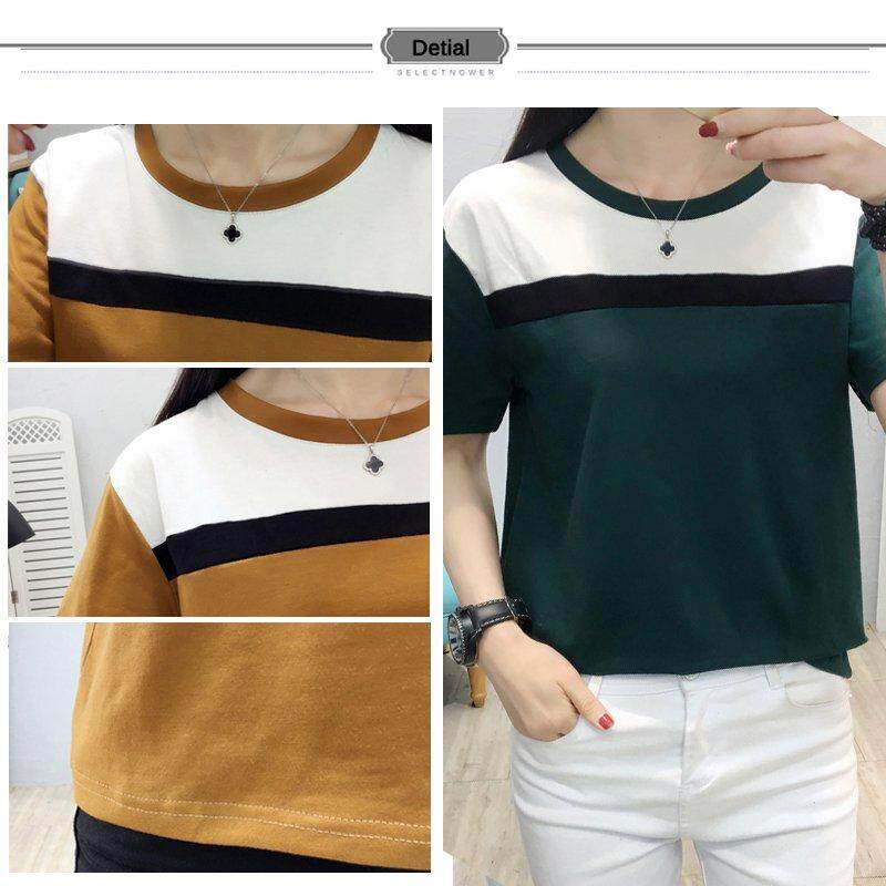 INWPLLR Women's Fashion T-Shirts Casual Korean-style Tops Tees Summer Short Sleeve Tshirt Female Patchwork T-shirt Plus Size