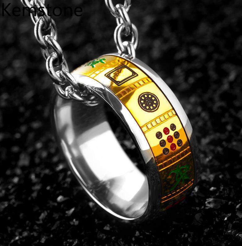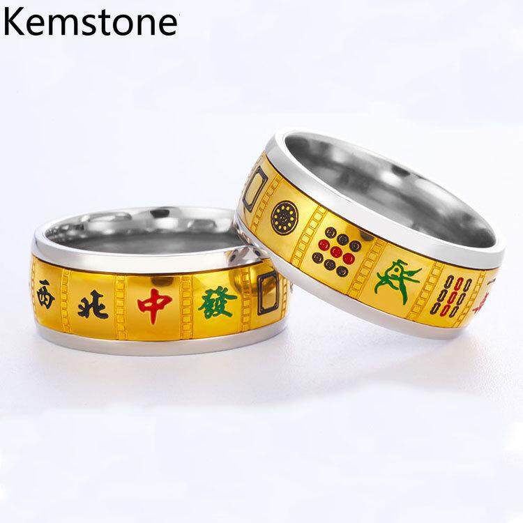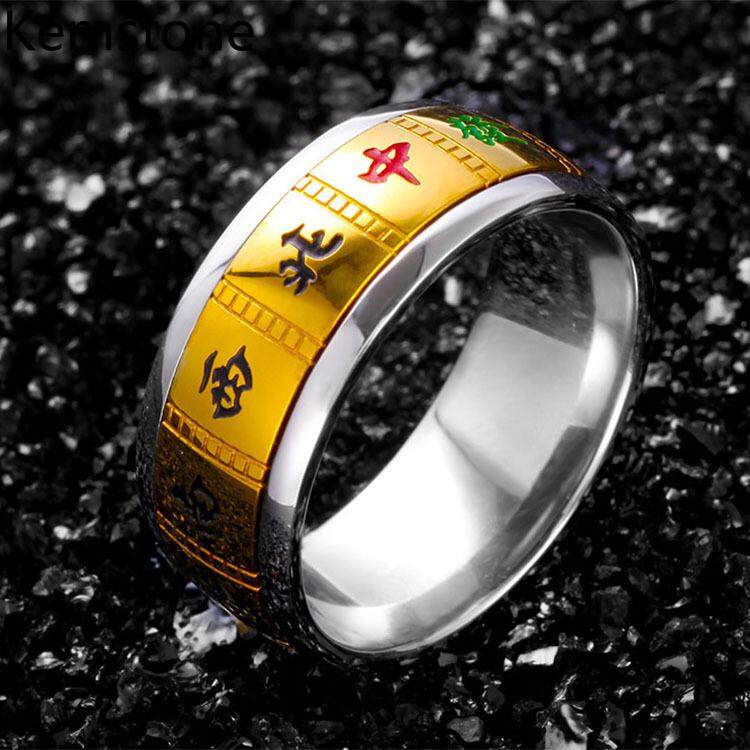 Kemstone Fashion Stainless Steel Mahjong Rotatable Rings for Men Lucky Jewelry Gifts Hot Sale