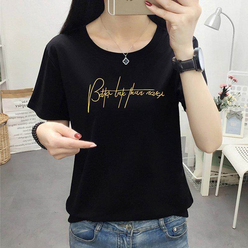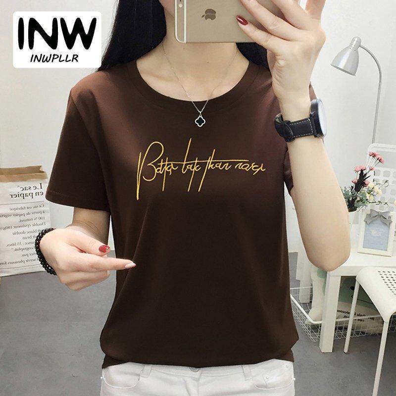 INWPLLR Women's Fashion Tops Tees Letter Embroidery Tshirts M-5XL Plus Size T-Shirts Summer Korean-style Tshirt Casual Short Sleeve T Shirt For Women