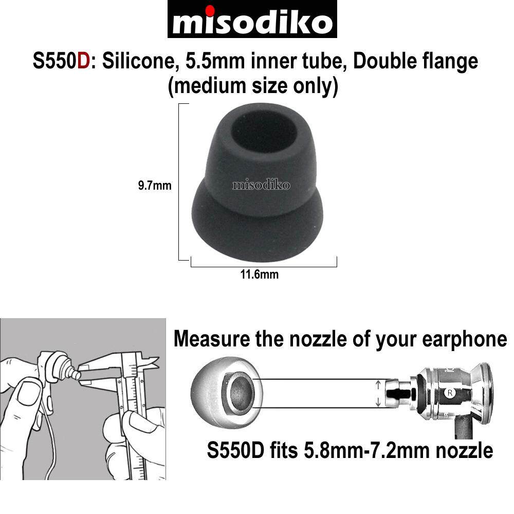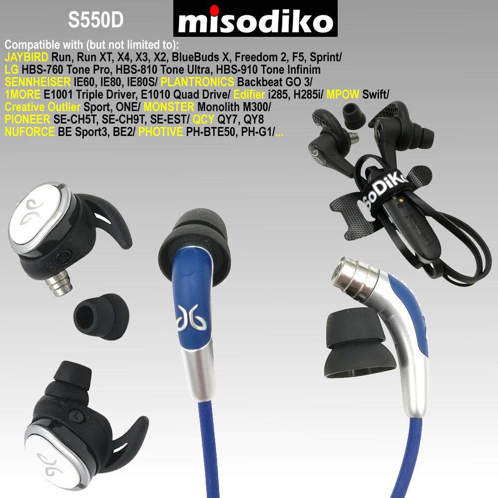 misodiko S550D Silicone Earbuds Tips - for Jaybird X4 X3 X2, BlueBuds X, Freedom 2 F5 Sprint/ 1MORE E1001 Triple Driver, E1010/ Photive PH-BTE50/ Plantronics Backbeat GO 3/ HBS-760/ NuForce BE Sport-