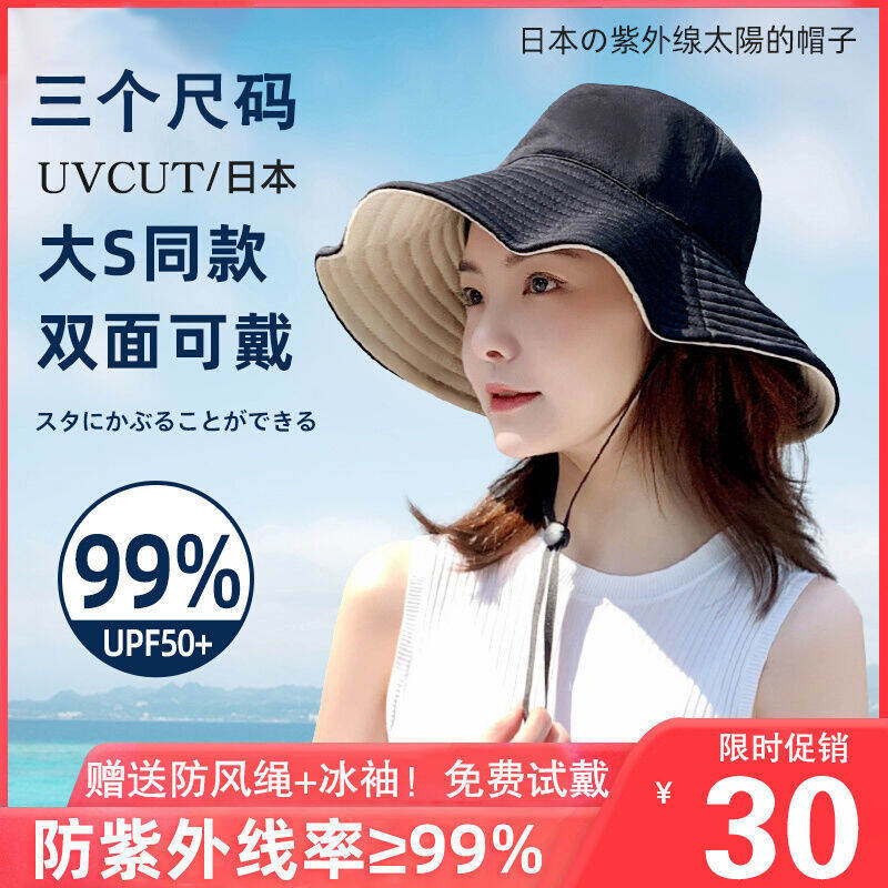 Big S Same Style Summer Japanese Uvcut Sun Protection Hat Female Fisherman Hat Folding Double-sided UV Protection Summer Sun Hat