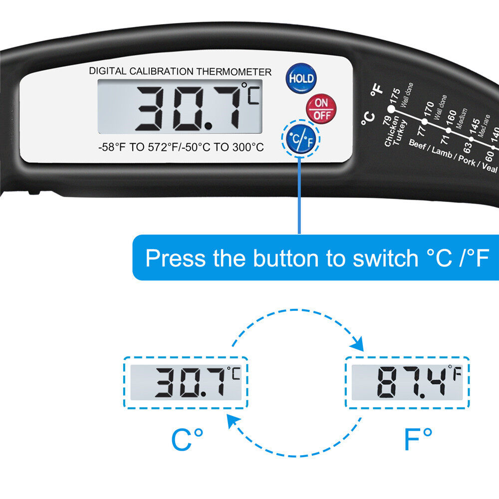 ORIA Digital Meat Thermometer, Instant Read Cooking Thermometer, Electronic Meat Thermometer With Probe for Kitchen, BBQ, Poultry, Grill Food & Candy- Fordable, Fast & Auto On/Off