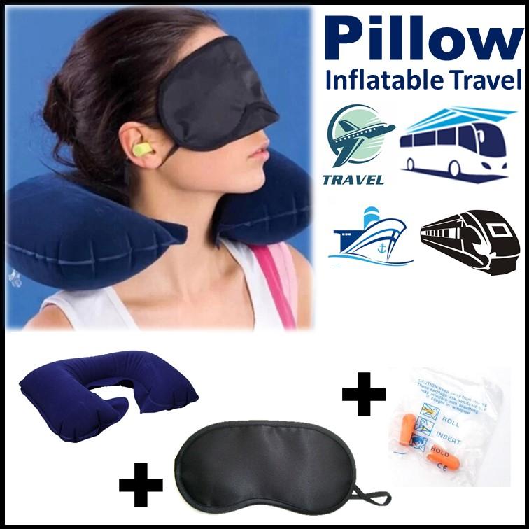 2019 New Inflatable Flight Travel Pillow Neck U Rest Air Cushion+ Eye Mask + Earplug Set (1 x Inflatable Pillow 1 x Eye Mask 2 x Earplug)