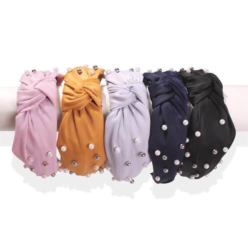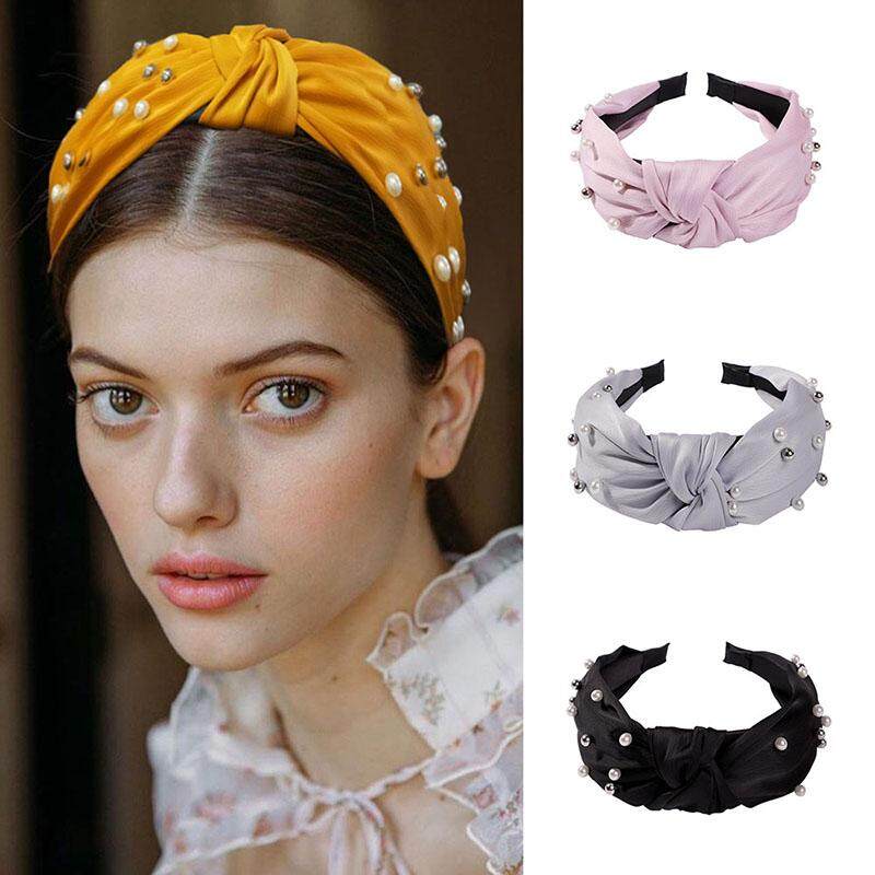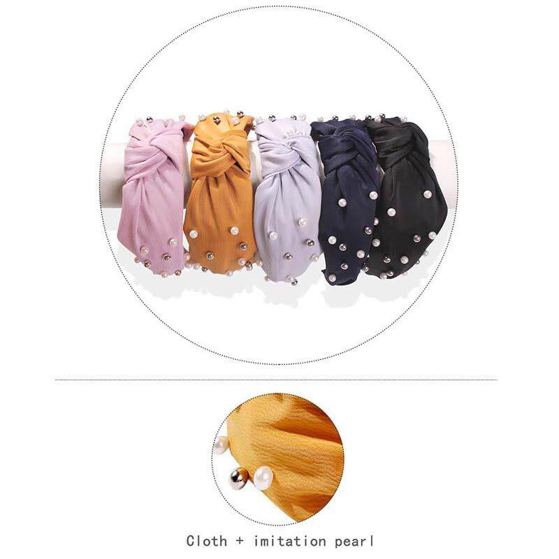 Imitation Pearls Headband Solid Knotted Hair Band for Women Fashion Korean Style Wide Girls Hair Hoop Hair Accessories