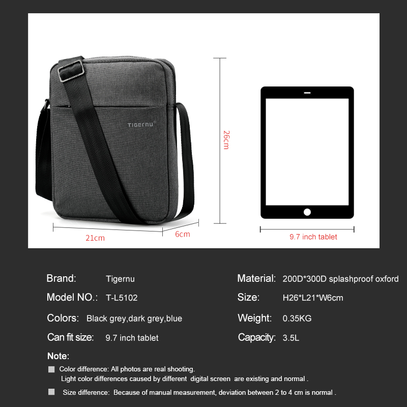 Tigernu Waterproof shockproof crossbody Bags 9.7 inch Travel bag 2022 Sling bag for men T-L5102