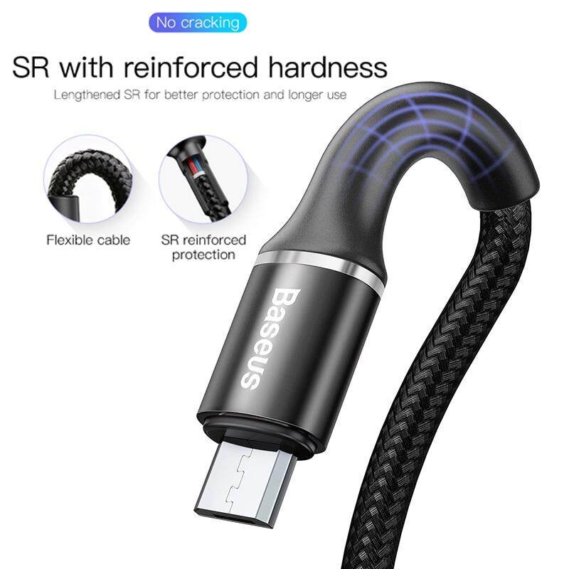 Baseus LED Micro USB Cable 3A Fast Charging For Samsung Huawei Xiaomi Oppo Vivo, Android Phone , Tablet PC,and Most Android Tablets Wire Cord