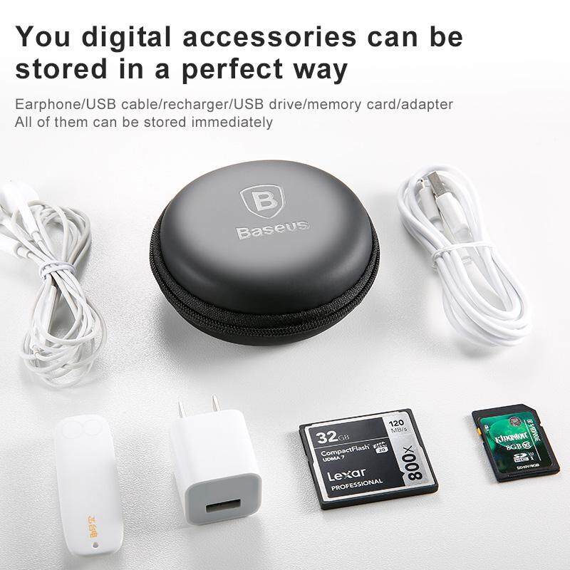 Baseus Portable Earphones Earbuds Carrying Bag Case Memory Card USB Cable Waterproof Organizer Box