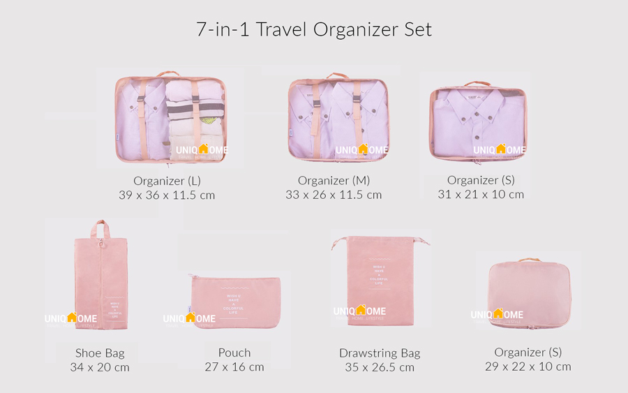 UniqHome Travel Organizer 7 Pieces Foldable Washable Luggage Set Organizer Luggage Organizer Travel bag Luggage Organiser Foldable bag Packing Bag Travel Organiser