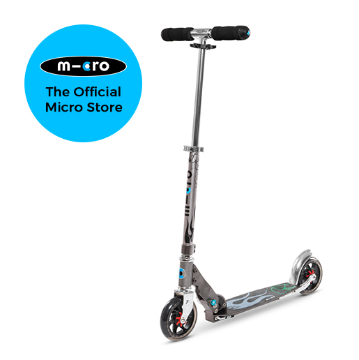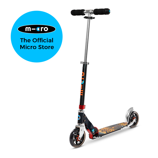 Unobtrusive, but still an eye-catcher, the Micro Scooter Speed+ is equipped with shock-absorbing wheels – and a very special extra feature. The ball bearings are embedded in silicone, achieving a mild shock absorbing effect and, consequently, contributing to a smooth ride - even on rough surfaces. The unique look of the Micro Scooter Speed+ is rounded off by its cool designs. This aluminium scooter is your perfect companion on the way to school or when enjoying some leisure time.