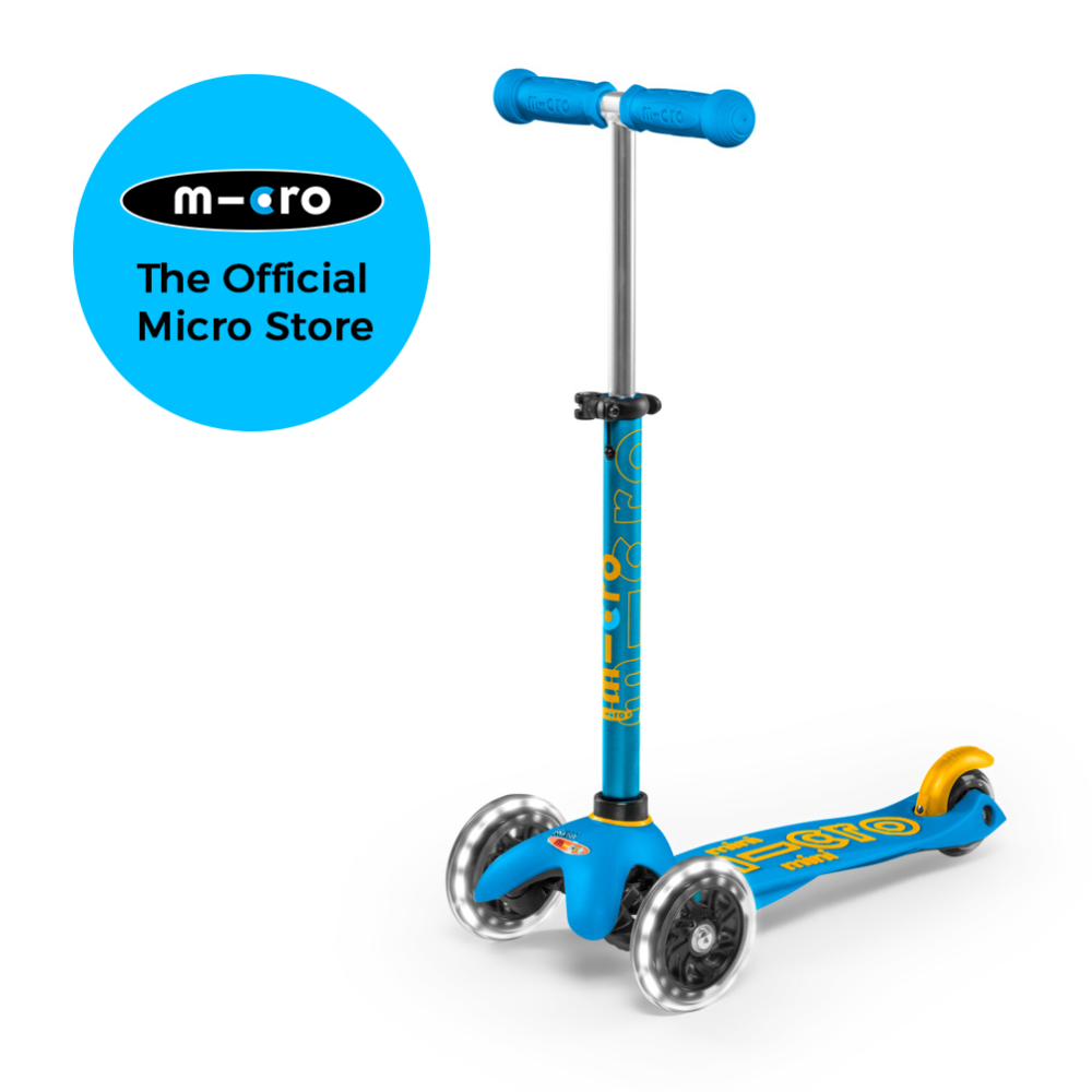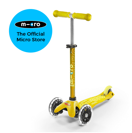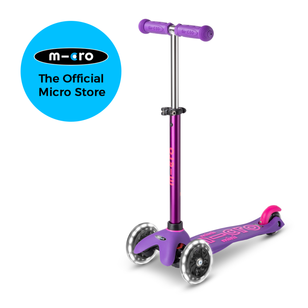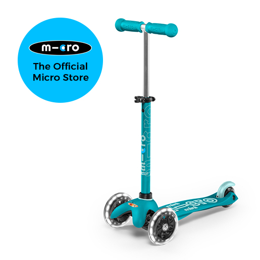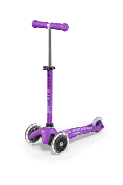 Surfing the sidewalk – the Mini Micro was elected Toy of the Year by kids and parents several times! This sports toy not only encourages movement and exercise, it also helps children to learn balance, co-ordination and motor skills.It was specially developed for toddlers and preschoolers, in collaboration with Swiss medical professionals.The T-tube handle makes it even safer and has a safety lock so that only parents can remove it, when needed, for storing. The Mini Micro‘s unique lean-and-steer mechanism is patented. The soft plastic and rounded edges make it easier for younger children to handle and helps avoid injuries.The high-quality brake has a steel spring insert and doesn‘t heat up while breaking. Now available as DELUXE version with LED front wheels!