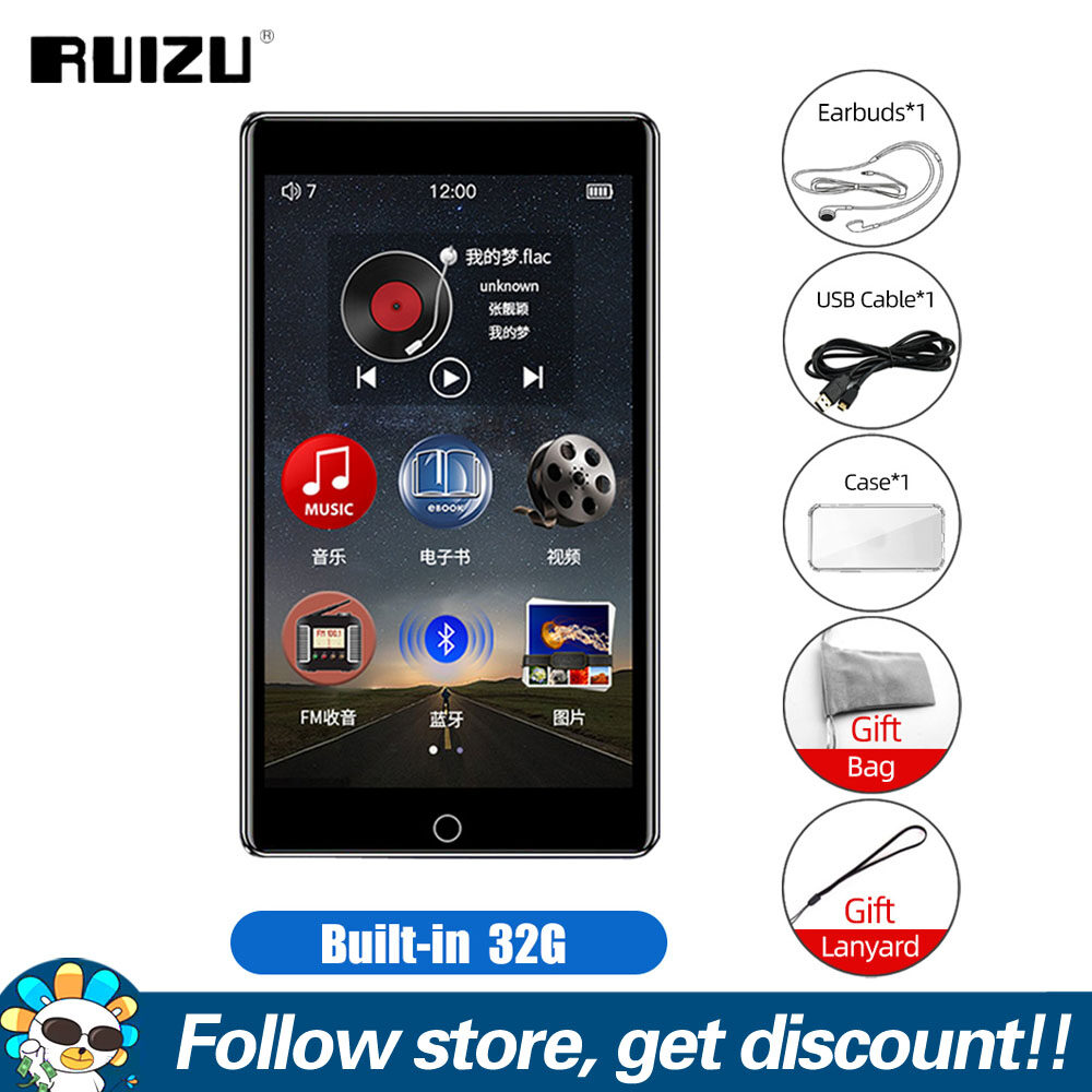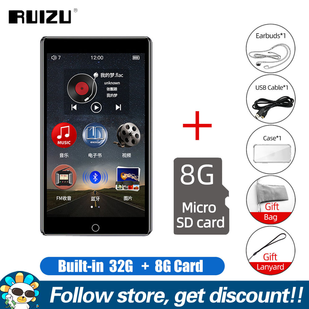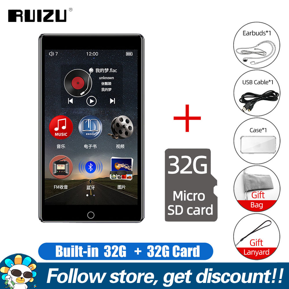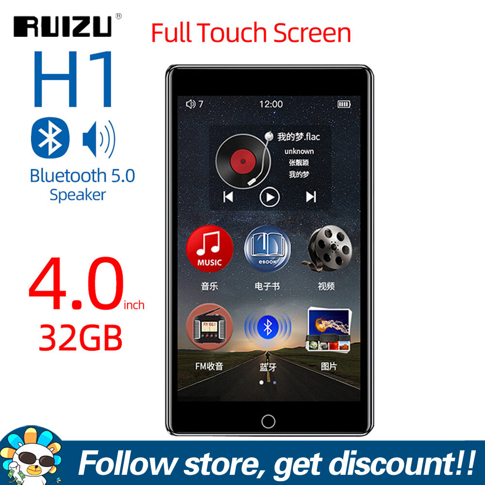 FAAEAL RUIZU H1 Full Touch Screen MP3 Player With Bluetooth 32GB Music Player With Built-in Speaker Support FM Radio Recording Video Player HiFi Metal Audio Player