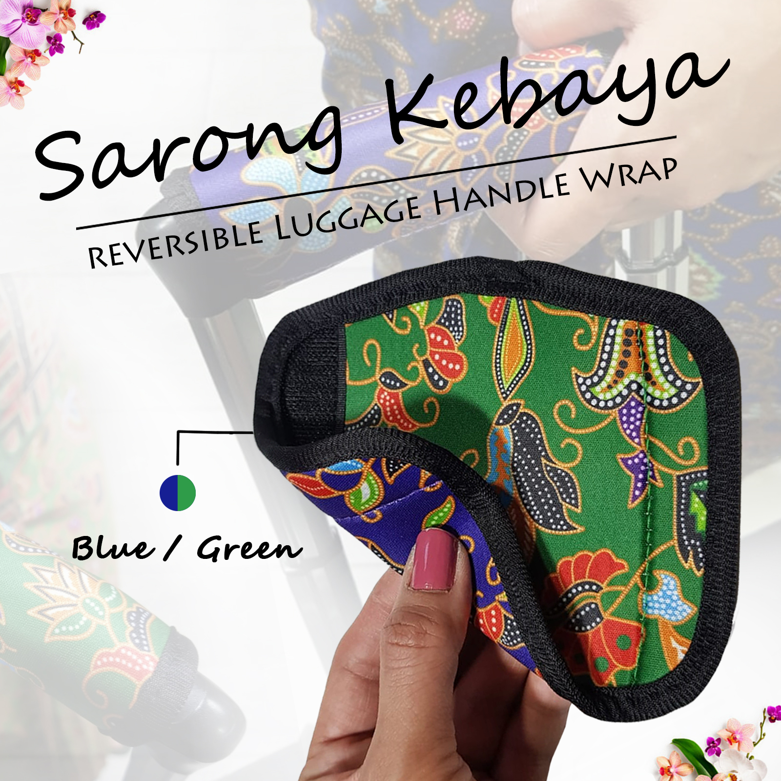 Reversible Singapore Airlines Sarong Kebaya Floral Soft Luggage Handle Grip Wrap Cover Luggage Identifier