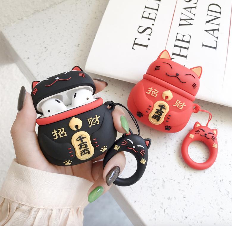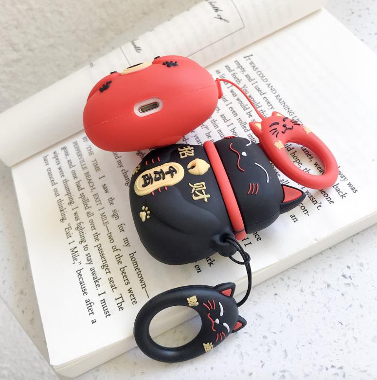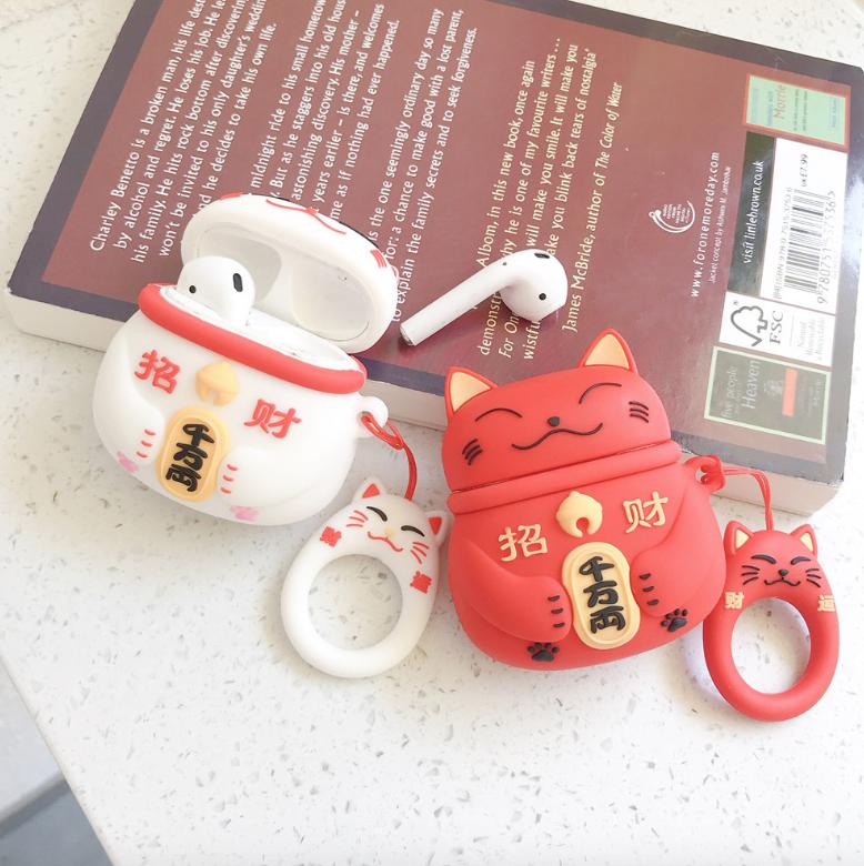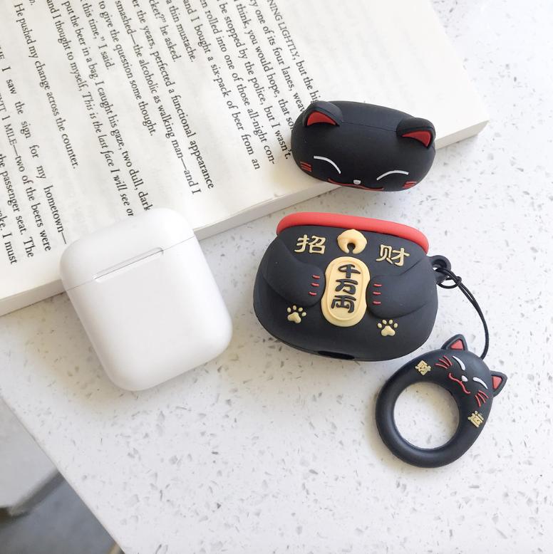 Cute Japanese Style Lucky Cat Apple AirPods AirPods Pro case with iRing Soft Silicone bluetooth headset earphone protective cover Shockproof Case good fortunate for Apple AirPods cover Fortune Cat Ear