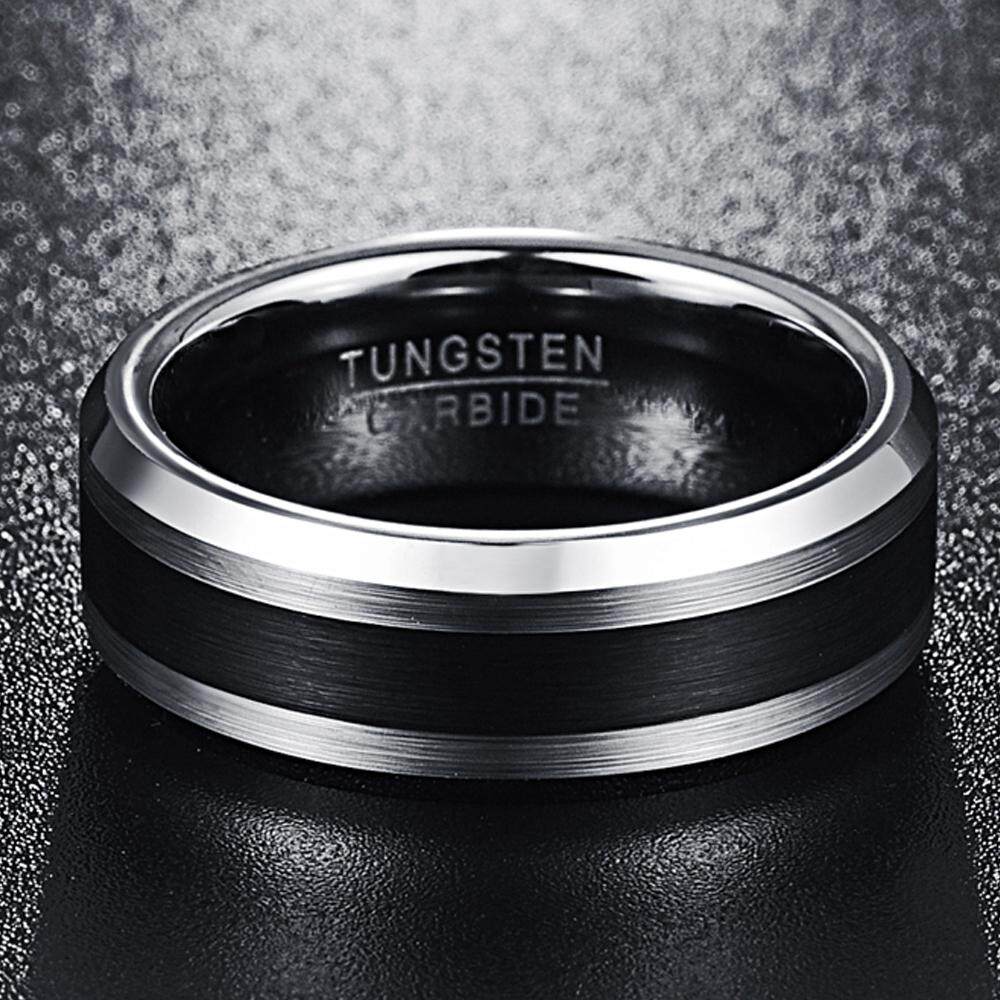 AVECON 【Support Engrave】Mens 8MM Tungsten Ring Brushed Finish and Black Center Beveled Edge Size 5 to 14