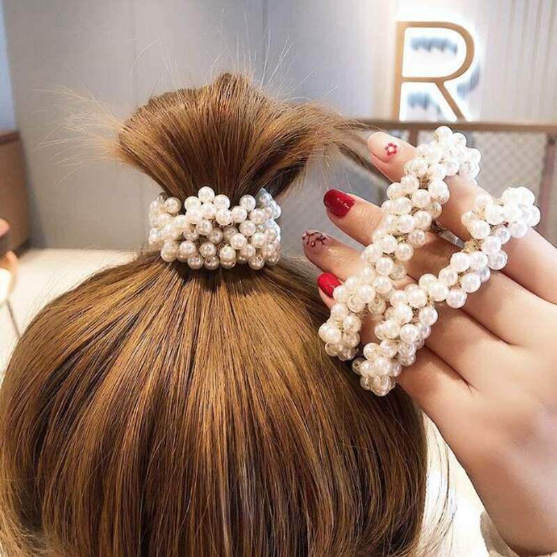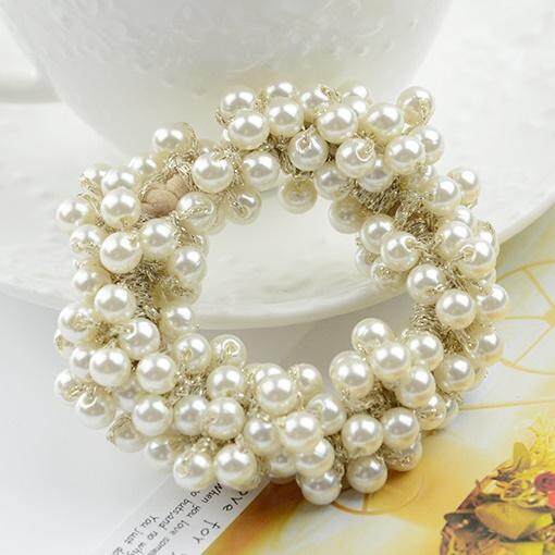 FAITOLAGI 1Pcs Women Hair Accessories Pearls Beads Headbands Ponytail Holder Girls Rubber Rope Vintage Elastic Hair Bands
