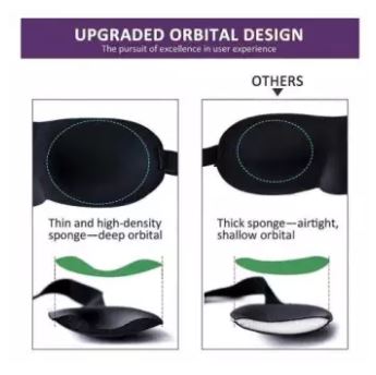 Light-weight, convenient and comfortable product.Suited for travel, office, headache relief, etc.Perfect sleeping tool for a better immune system.Made of soft sponge with secure strap.Smart design to match a person's face shape.Completely blocks out ambient light, giving you a better sleeping experience.