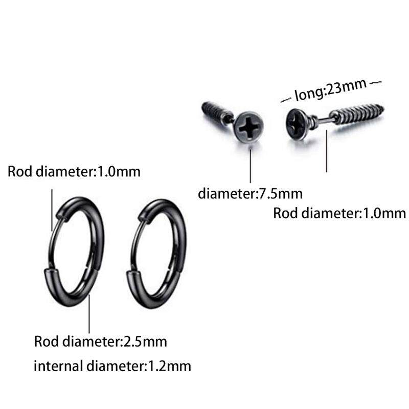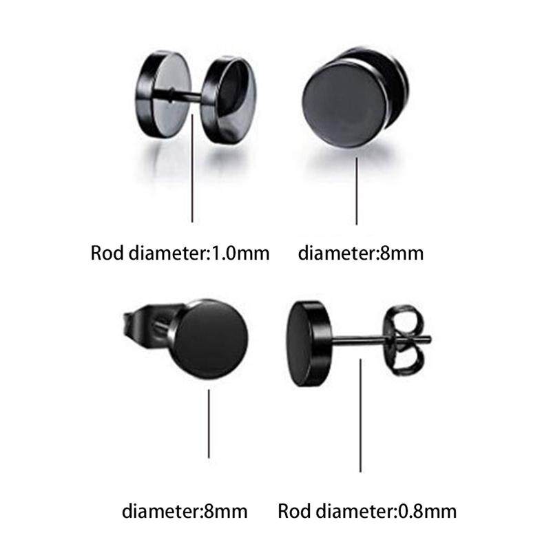 BZY 6 Pairs/set Titanium Steel Stud Earrings for Men Piercing Black Dumbbell Stud Earring Set