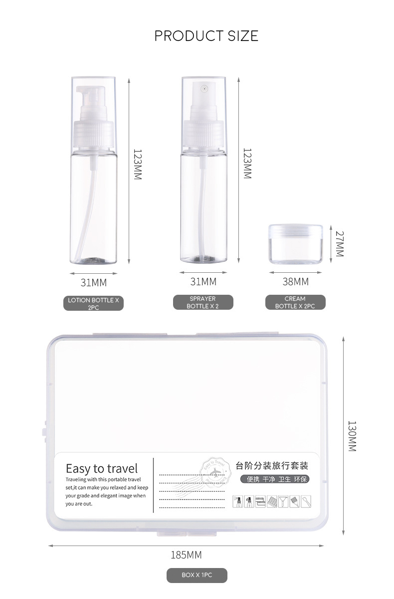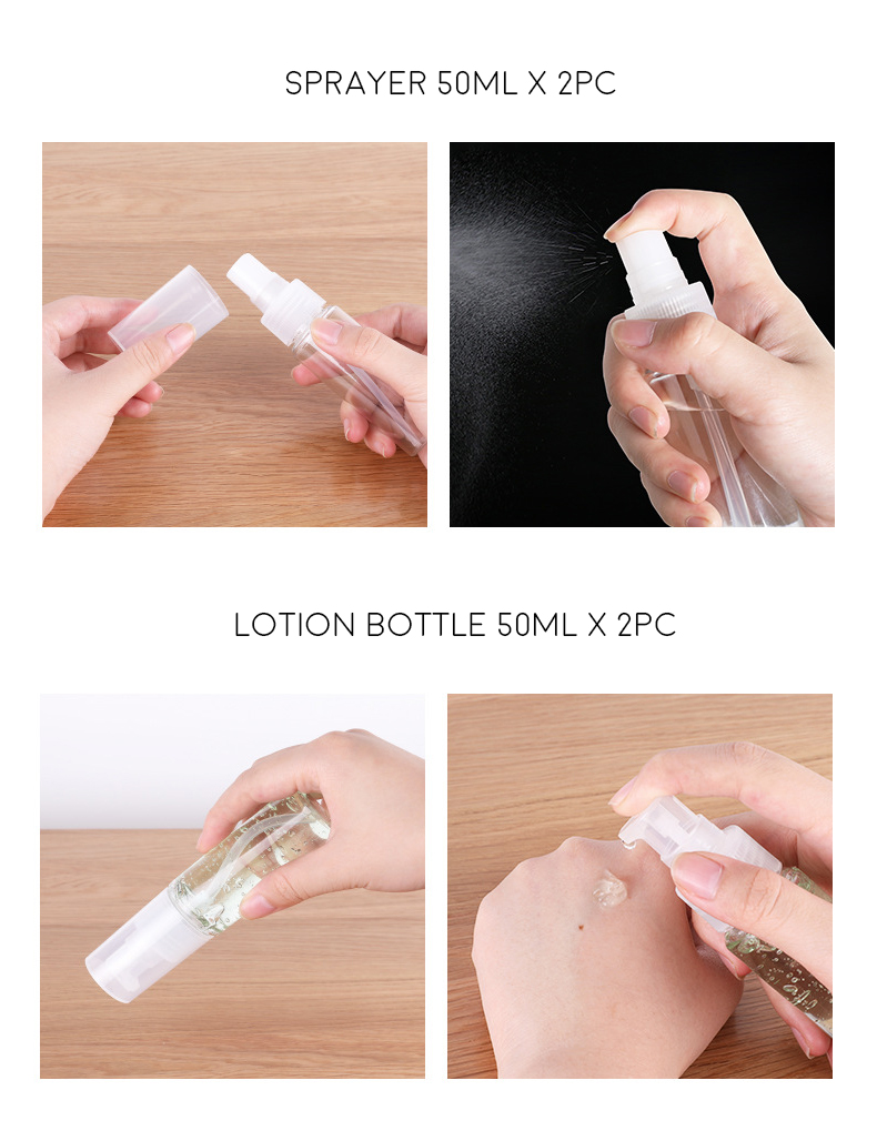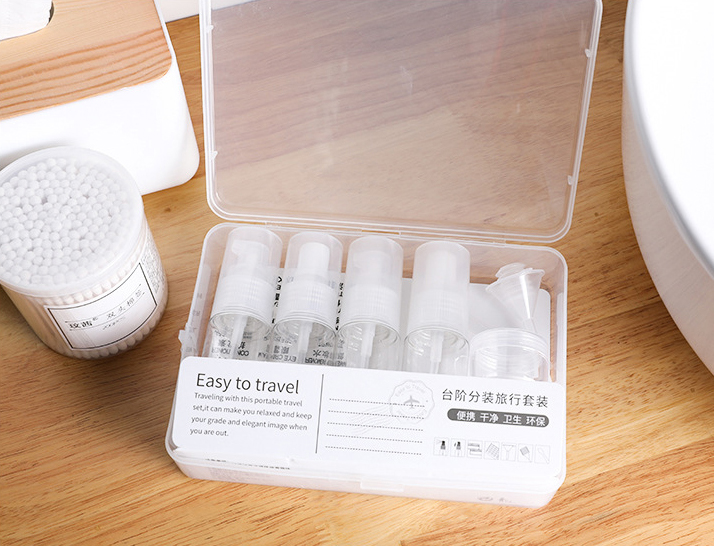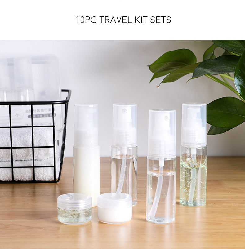 10pc travel kit sets cosmetics, bottled spray lotion, small empty bottle, portable storage set