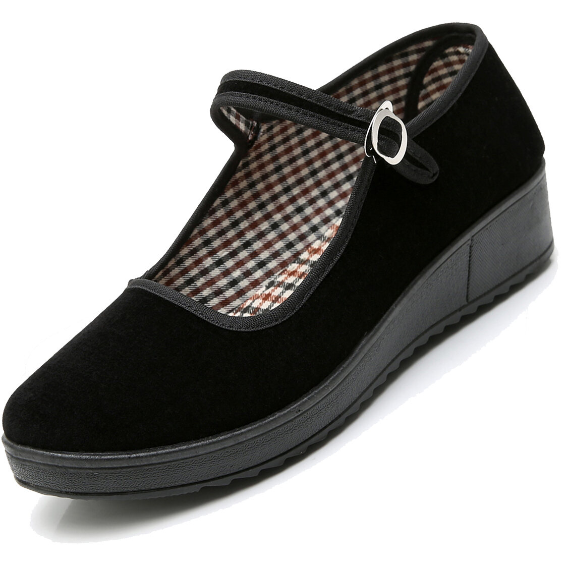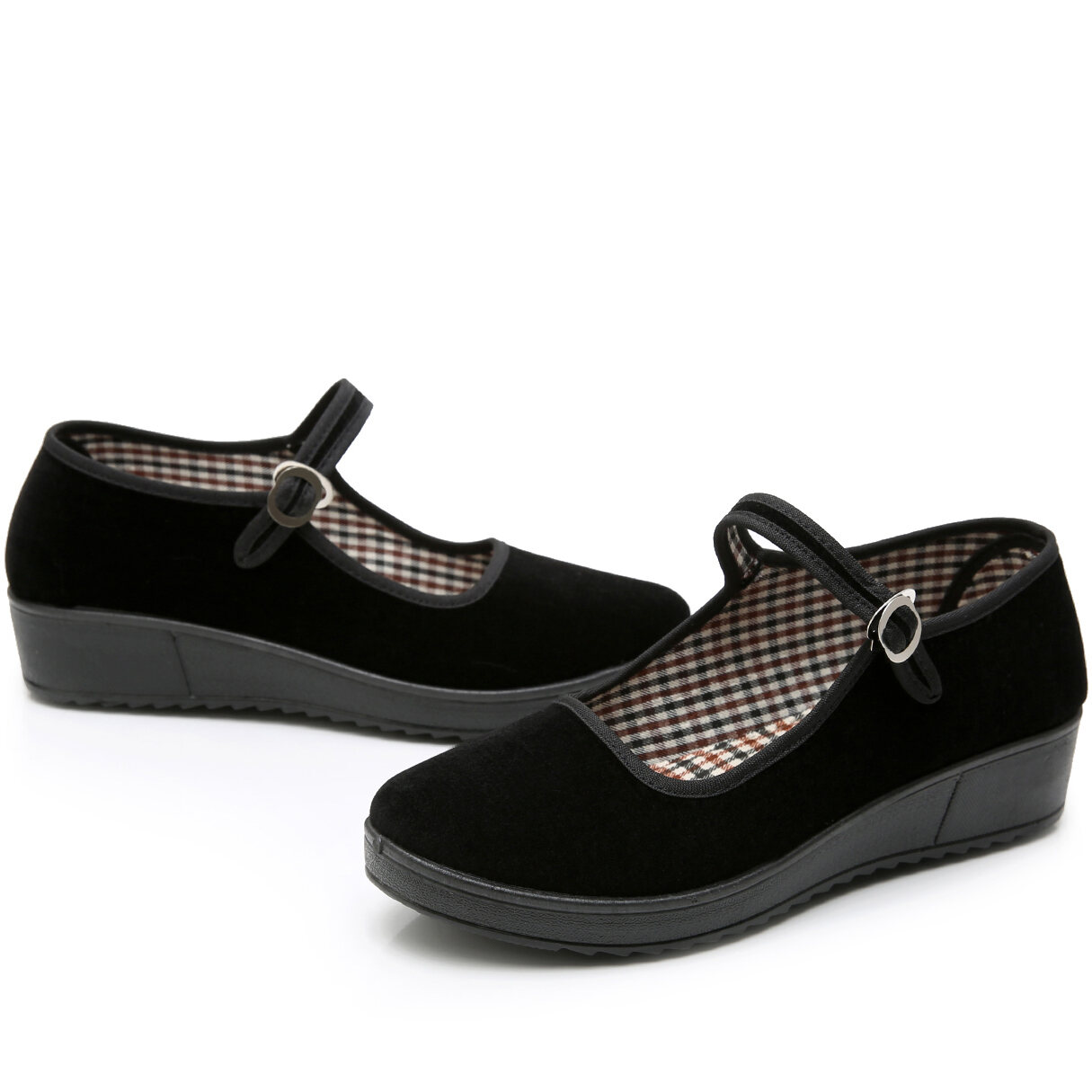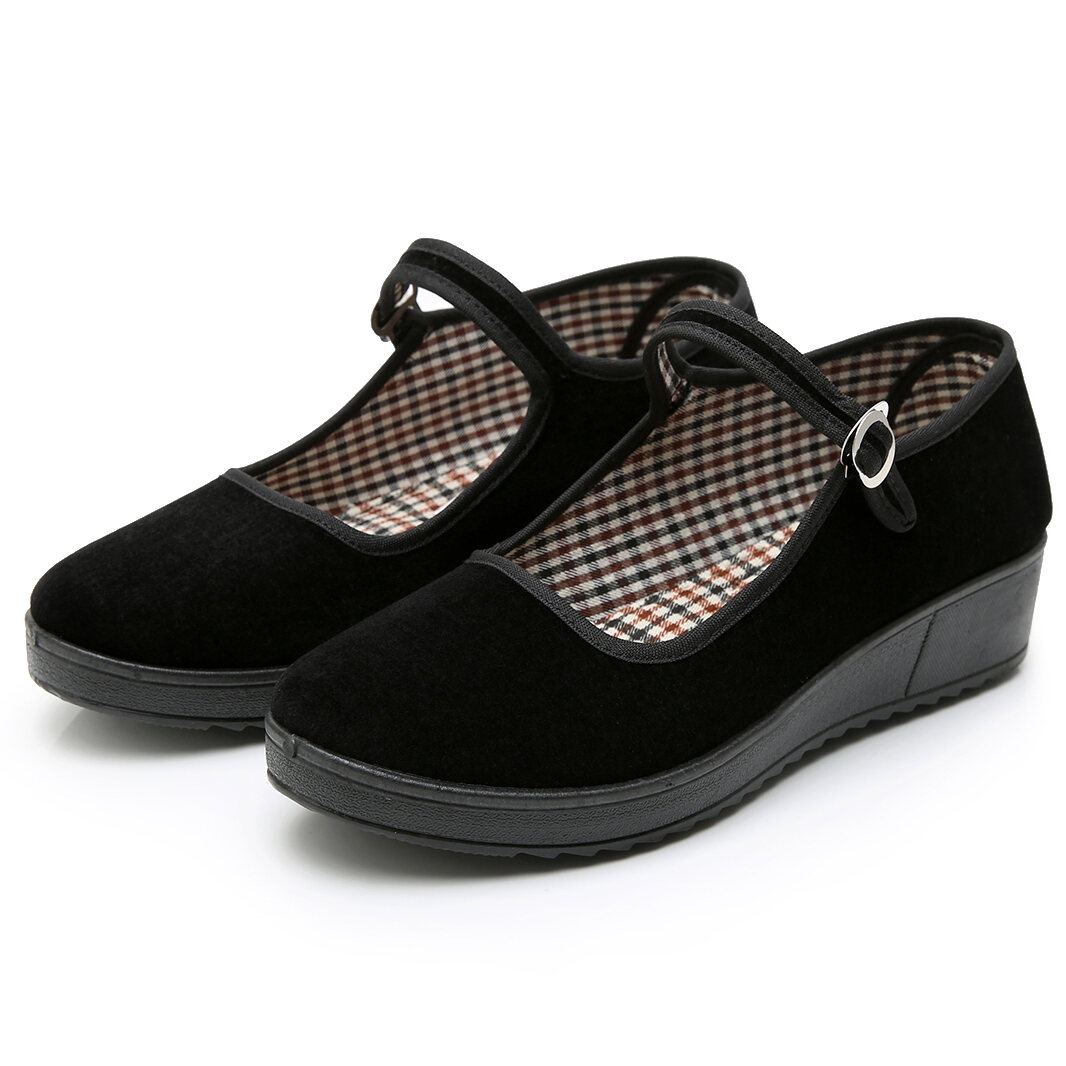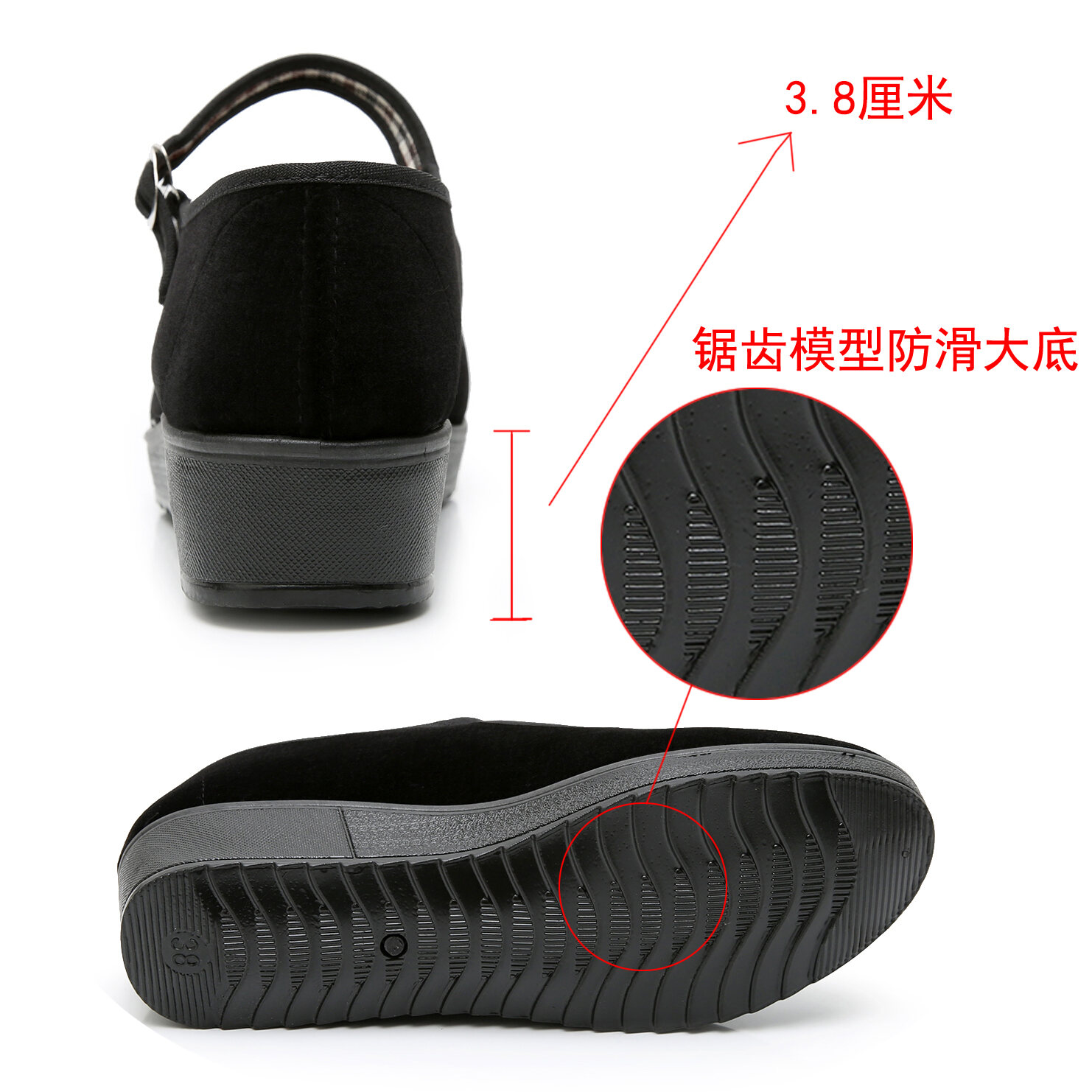 Thick-soled high-heeled old Beijing cloth shoes women's soft-soled black cloth shoes hotel work shoes flat etiquette single-layer shoes mother dance shoes