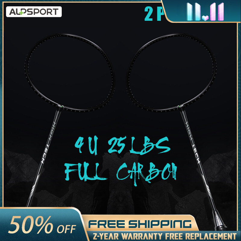 ALP RR 2Pcs With Bag 100% Carbon 4U G5 25Lbs Badminton Racket Beginner Level Genuine Men and Women Training Professional Offensive Type for Home Entertainment Fitness White Black Red Pink