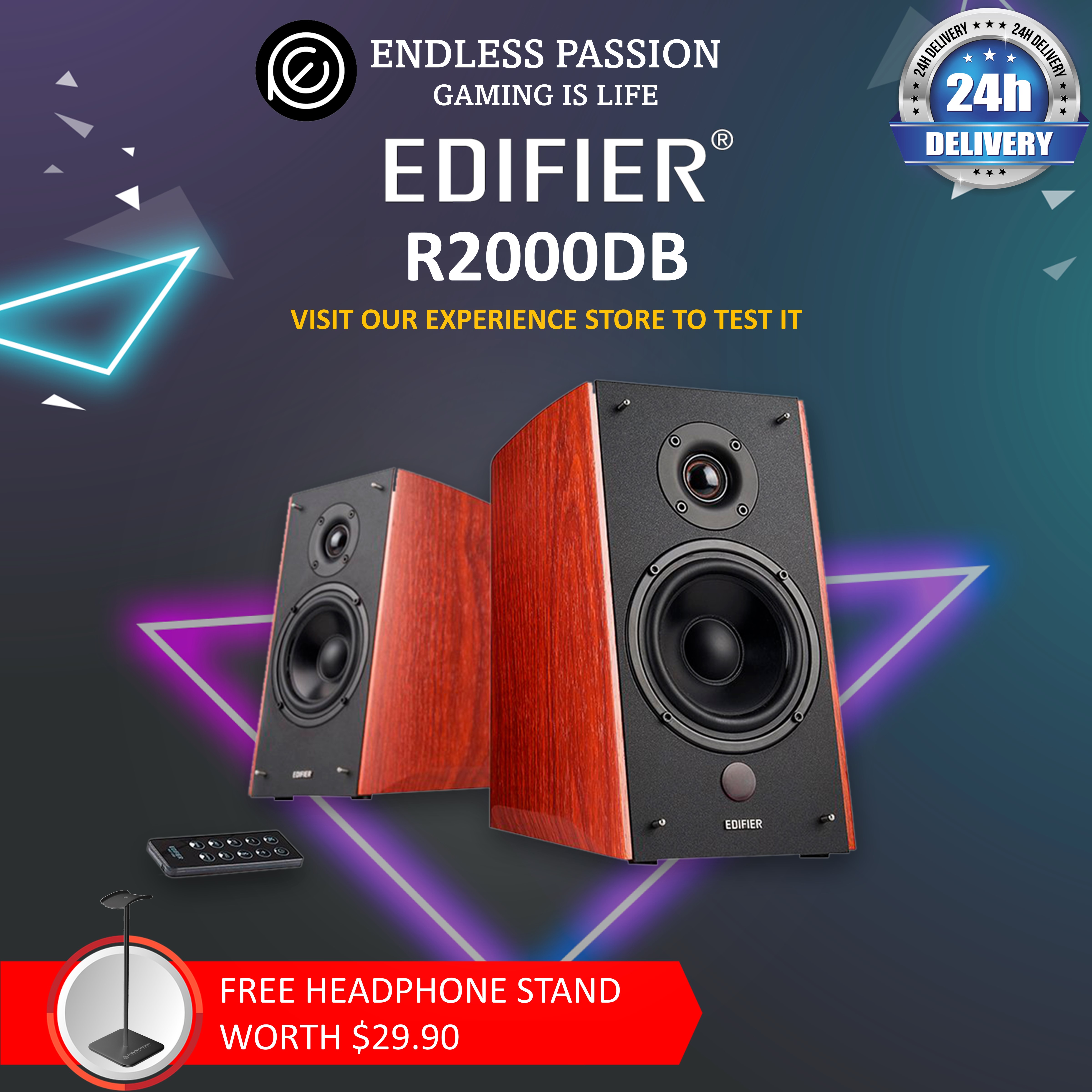 Edifier R2000DB Powered Bluetooth Bookshelf Speakers - Near-Field Studio Monitors - Optical Input - 120 Watts RMS - Black