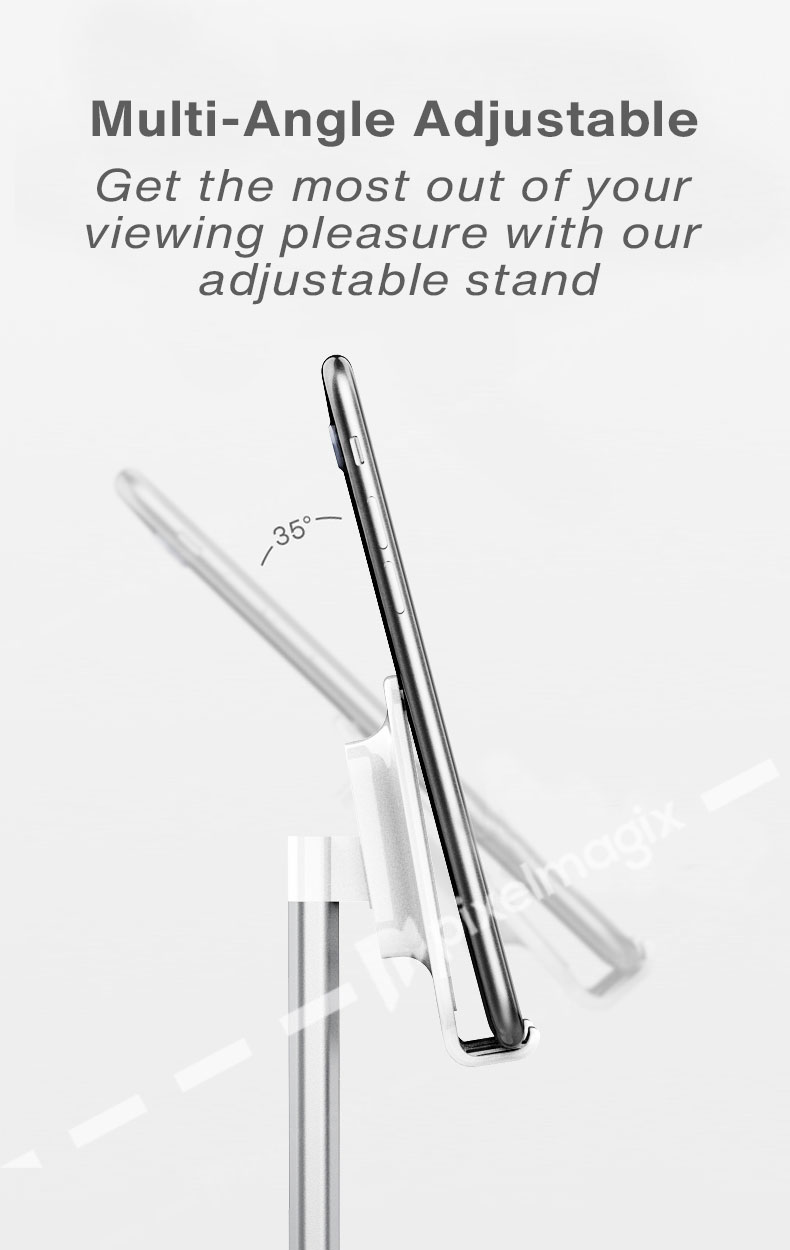 PixelMagix Adjustable Height Smartphone Metallic Mobile Holder Stand for Phone / Tablet Tablet Mount (Up to 25cm)