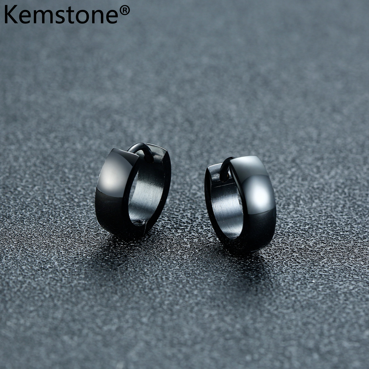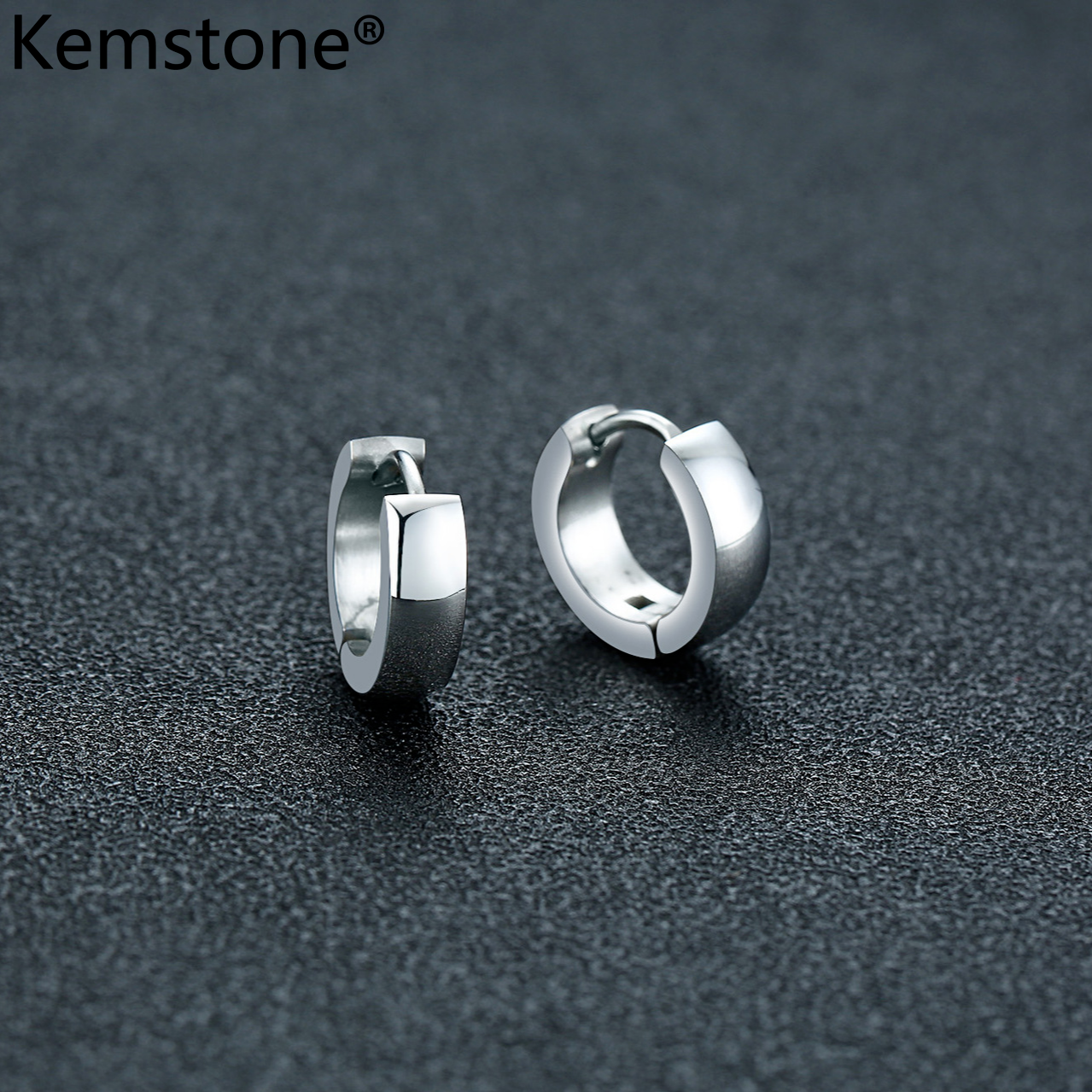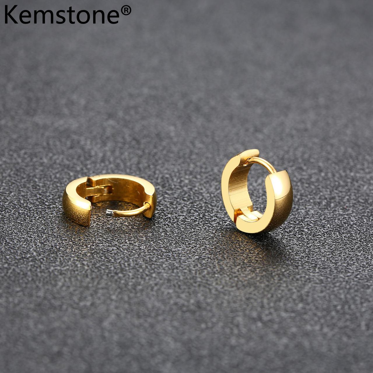 Kemstone Simple 4MM Stainless Steel Silver/Gold/Blue/Black Small Hoop Earrings for Men Women