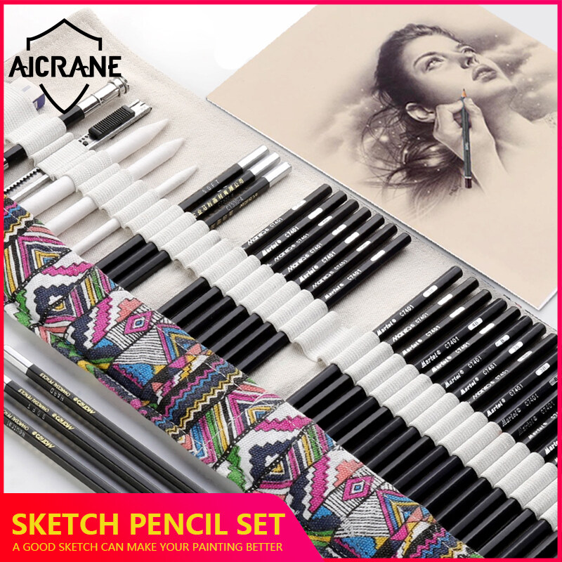 AICRANE Professional Art Set 27/41pcs Sketching Set Drawing Sketching Charcoal Pencils. Kneaded Eraser. Art Kit for Kids Teens