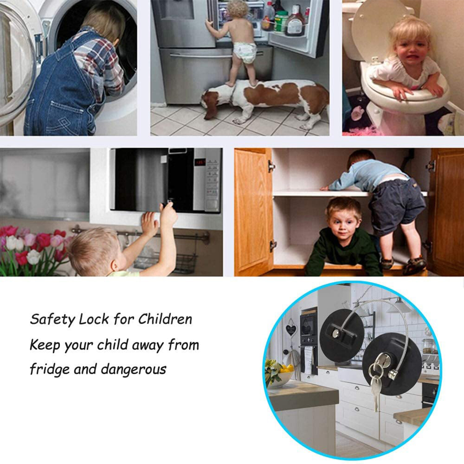 Refrigerator Lock, Fridge Lock with Keys, Freezer Lock and Child Safety Cabinet Locks for Child Proof - Black