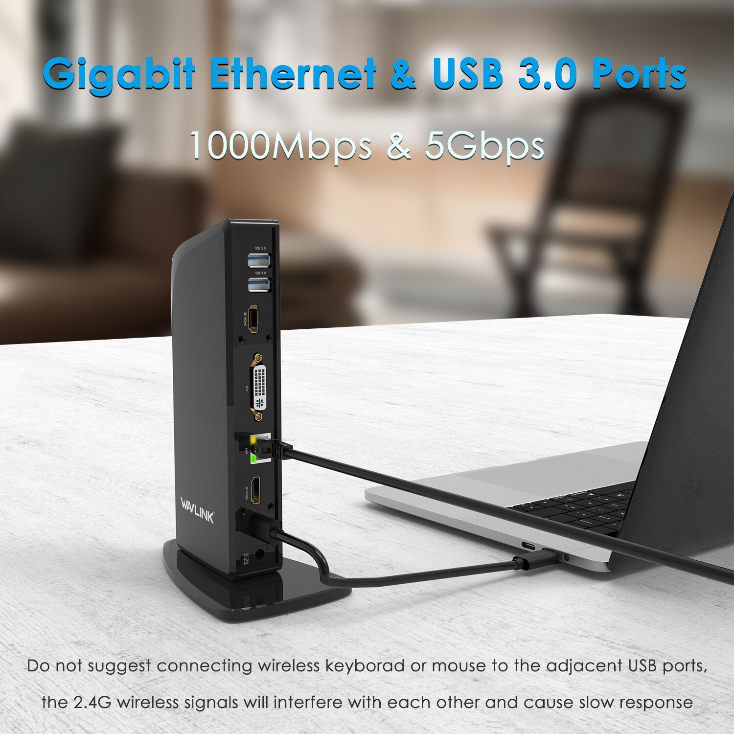 Wavlink USB-C Triple Display Universal Docking Station Working Online and Online Class Companion with Power Delivery for MacBook & Specific Windows USB Type-C (4K HDMI & 2K HDMI & DV1/ VGA, Gigabit Et