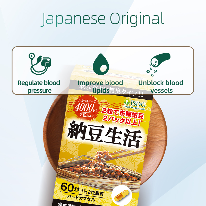 ISDG Natto Capsules Better Blood Circulation Soften blood vessels Care for Brain Prevent Senile Diseases. 60 Capsules