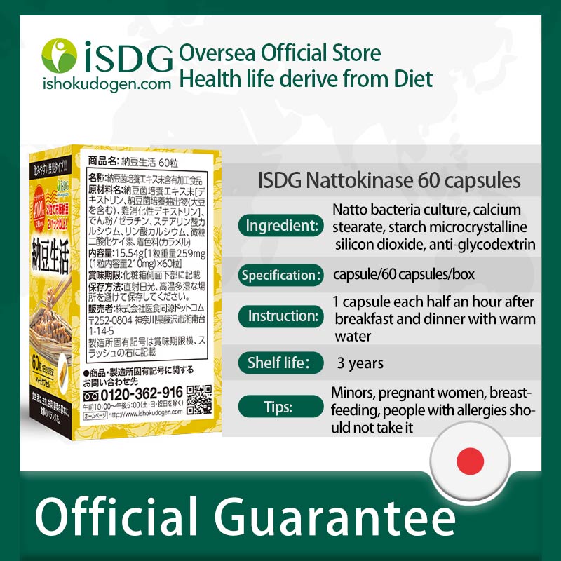 【Safety Information】1.It is not recommended to take during lactation, pregnancy or periods.2.It is not recommended for patients with a history of cardiovascular and cerebrovascular surger.3.If you have a medical condition, please consult with your physician before use.4.Due to anti-clotting effect of nattokinase. People with a history of cardiovascular and cerebrovascular surgery, people who have had heart stents, people who use clotting drugs, patients who have not healed wounds and within 2 weeks after surgery, pregnant women would not suitable to take them.5.Nutrients in our products will take effect in a short time. But due to individual situation, the time will be varied from 2 weeks to 3 months. Generally 3 packs is a treatment course so it is recommended to keep taking for 3 months to make better result.6.Tips: As a dietary supplement, this product is not a substitute of medicine.