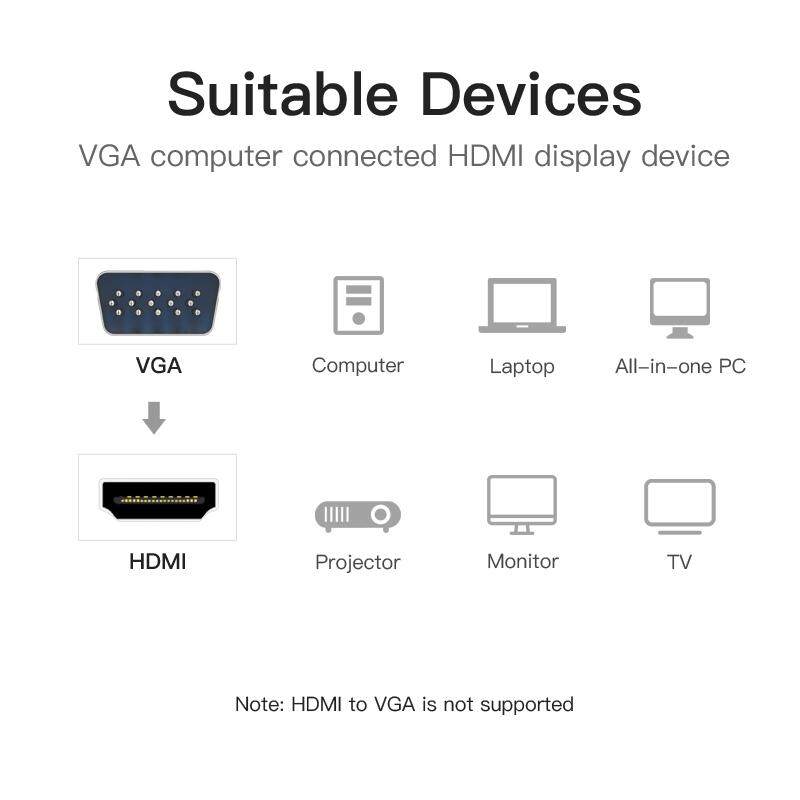 1.This product is only available for VGA (laptop) to HDMI (monitor/TV/projector) mode transmission.