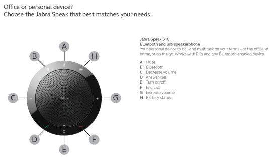 Jabra Speak 510+ MS USB Wireless Bluetooth Conference Speakerphone - Easy Setup, Portable Speaker for Holding Meetings Anywhere (Up to 15 hours of talk-time)
