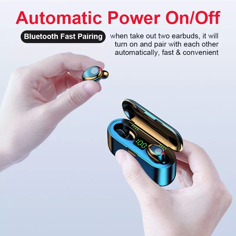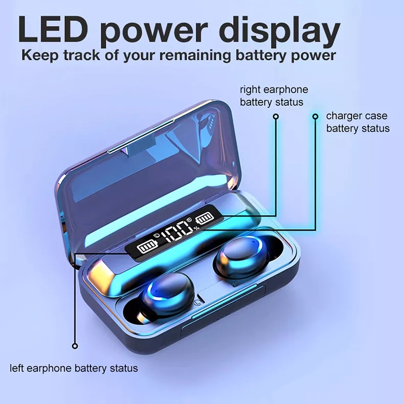 Original F9 TWS Earphone Wireless Earbuds Bluetooth 5.0 Headset Stereo Bass Touch Control Waterproof with Microphone