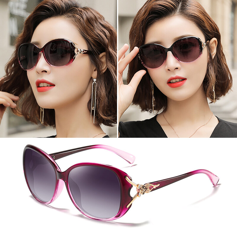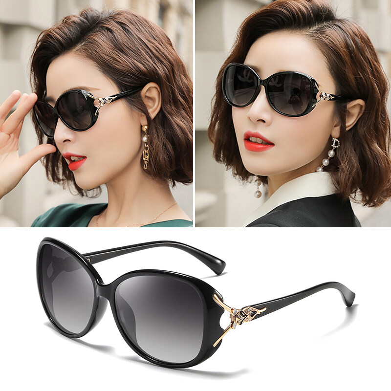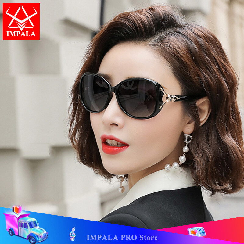 IMPALA QT102W Fashion Women Polarized Sunglasses Korean Style Anti UV400 Oversize Cat Eye Sun Glasses Block Sunshine Anti Glare Black Shades HD Lens Fox Shaped Decoration Black Spectacles 4 Colors ava