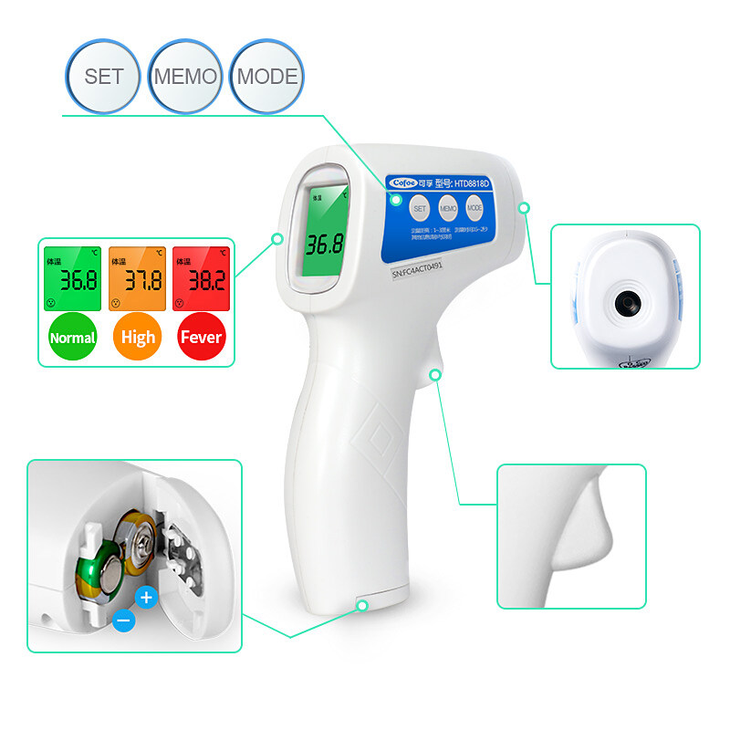 【Free masks】Cofoe Infrared Forehead Non-contact Thermometer Body / Object Digital Tri-color Backlight Thermometer Baby Adult Body Temperature Measure Capacity memories