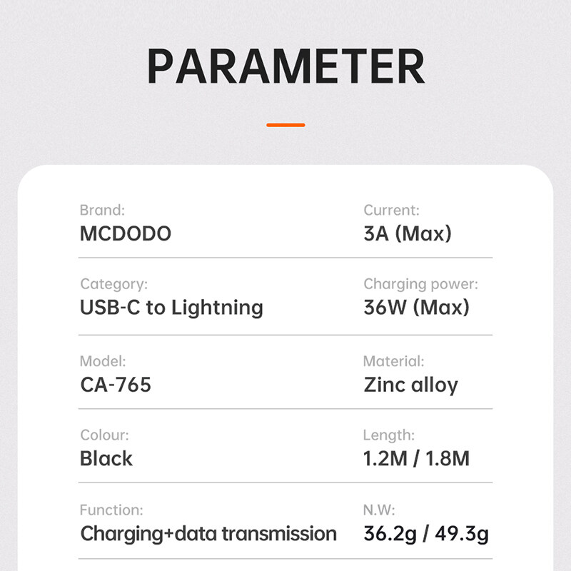 Mcdodo Smart indicator USB-C PD Fast Charging Cable Type C to For Lightning 36W 3A Charger Data USB C to For iPhone 12 mini 12 Pro Max/ XR XS Max 8 11 11pro PD ISO 14 Cable