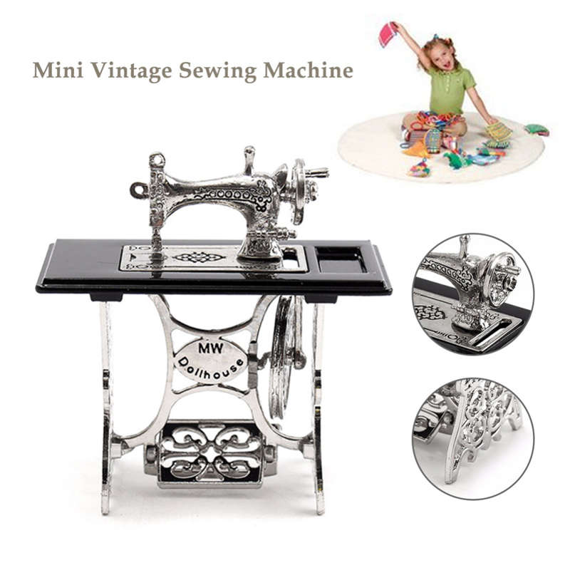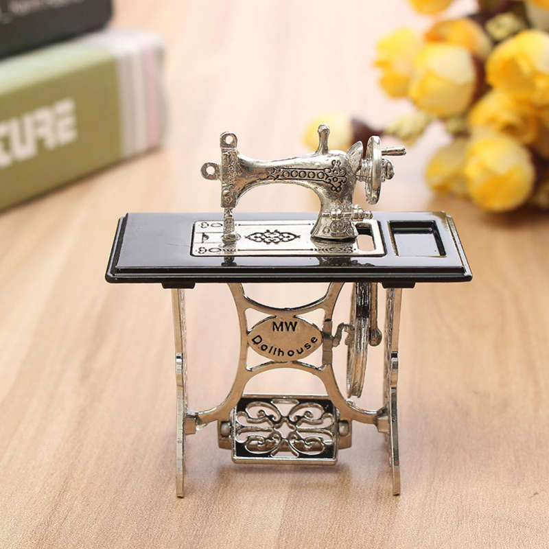 Vintage Mini Sewing Machine Dollhouse Doll Cloth Model Accessories Home Furniture Crafts Home Decoration Figurines Miniatures
