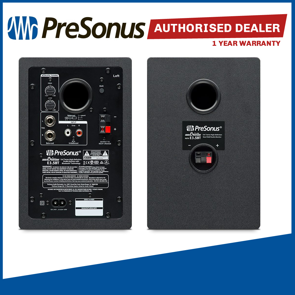 PreSonus Eris 3.5 BT Bluetooth Studio Monitor Speaker Description  Sound you can trust. PreSonus® Eris-series studio monitors are used worldwide by audio engineers who need to hear every detail of their recordings. Ideal for gaming and home video production, the Eris E3.5 employs the same technology as the larger Eris models to deliver studio-quality sound, with a smooth and accurate frequency response. Yet they’re compact enough to fit almost anywhere. Woofers that deliver a cleaner overal