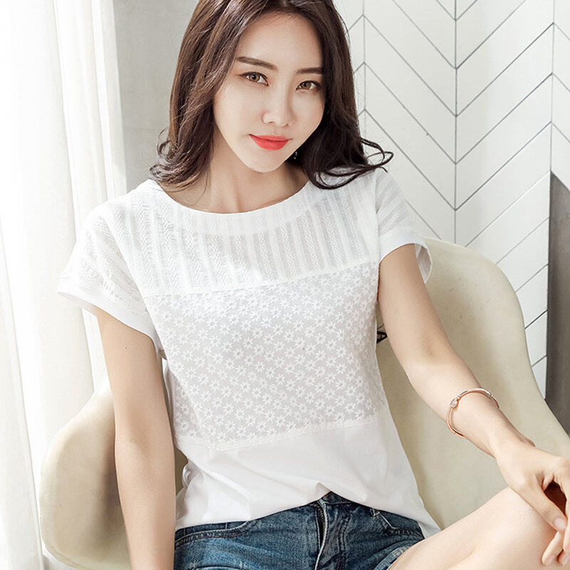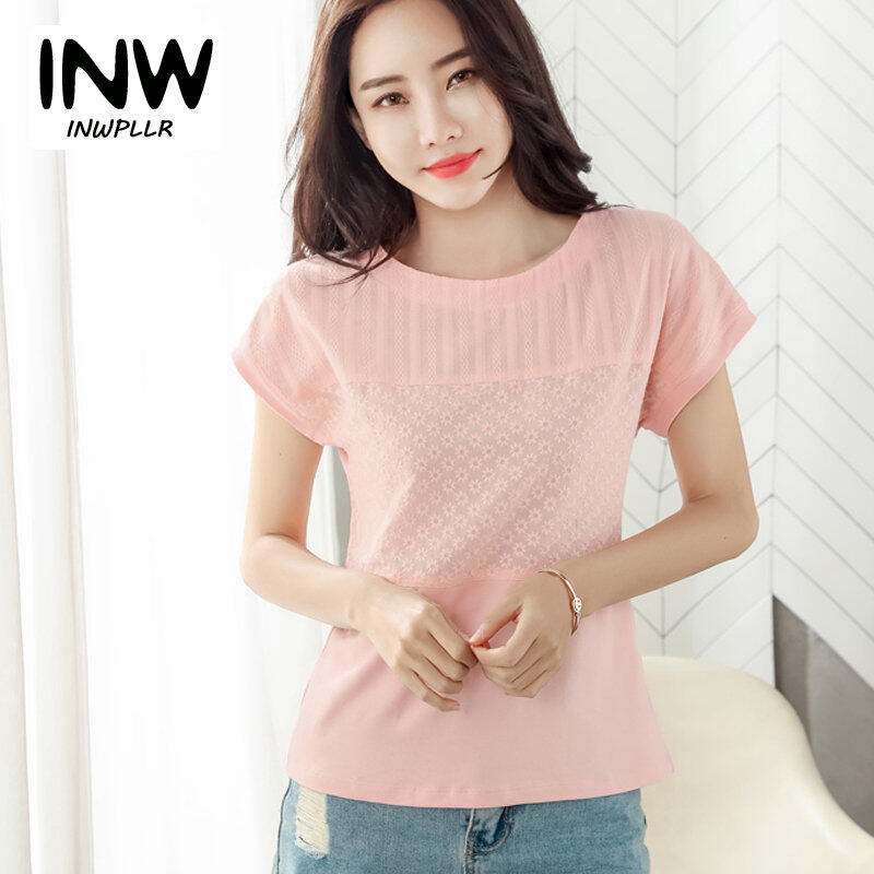INWPLLR Women's Patchwork Tops Summer Women T-shirts T Shirt Plus Size Fashion Women Tshirts Cotton Short Sleeve Korea T-shirt