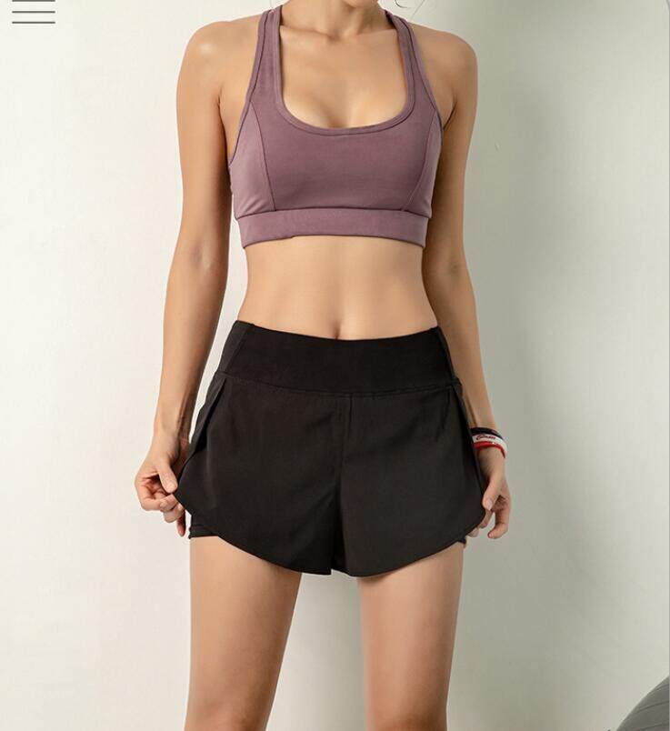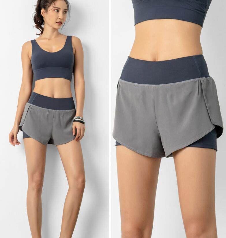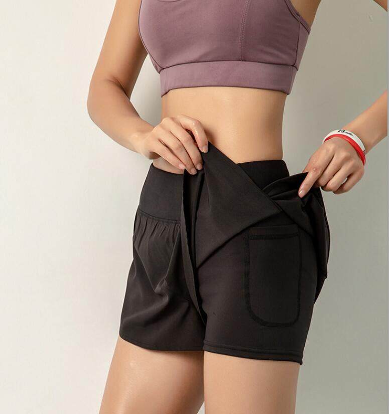 Summer Fashion Women Fitness Leggings Ladies Shorts Double-Layer Quick-Drying Gym Running Yoga Sports Shorts Casual Solid Color Short Pants Beach Skirt