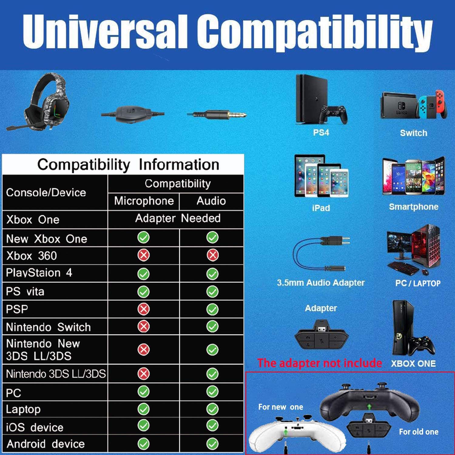 ONIKUMA K20 Gaming Headset PS4 Headphones 3.5mm PC Gamer Stereo Game Headphones with Microphone/Led Light for XBox One/Laptop Tablet