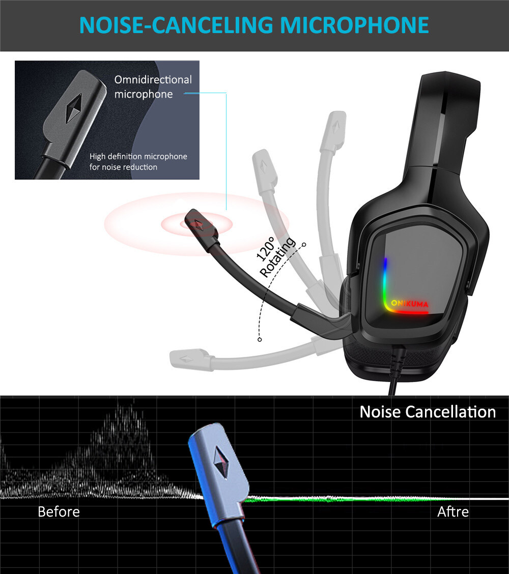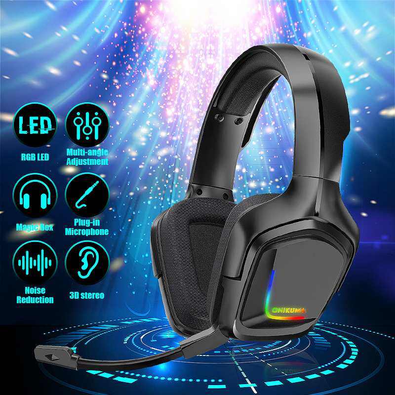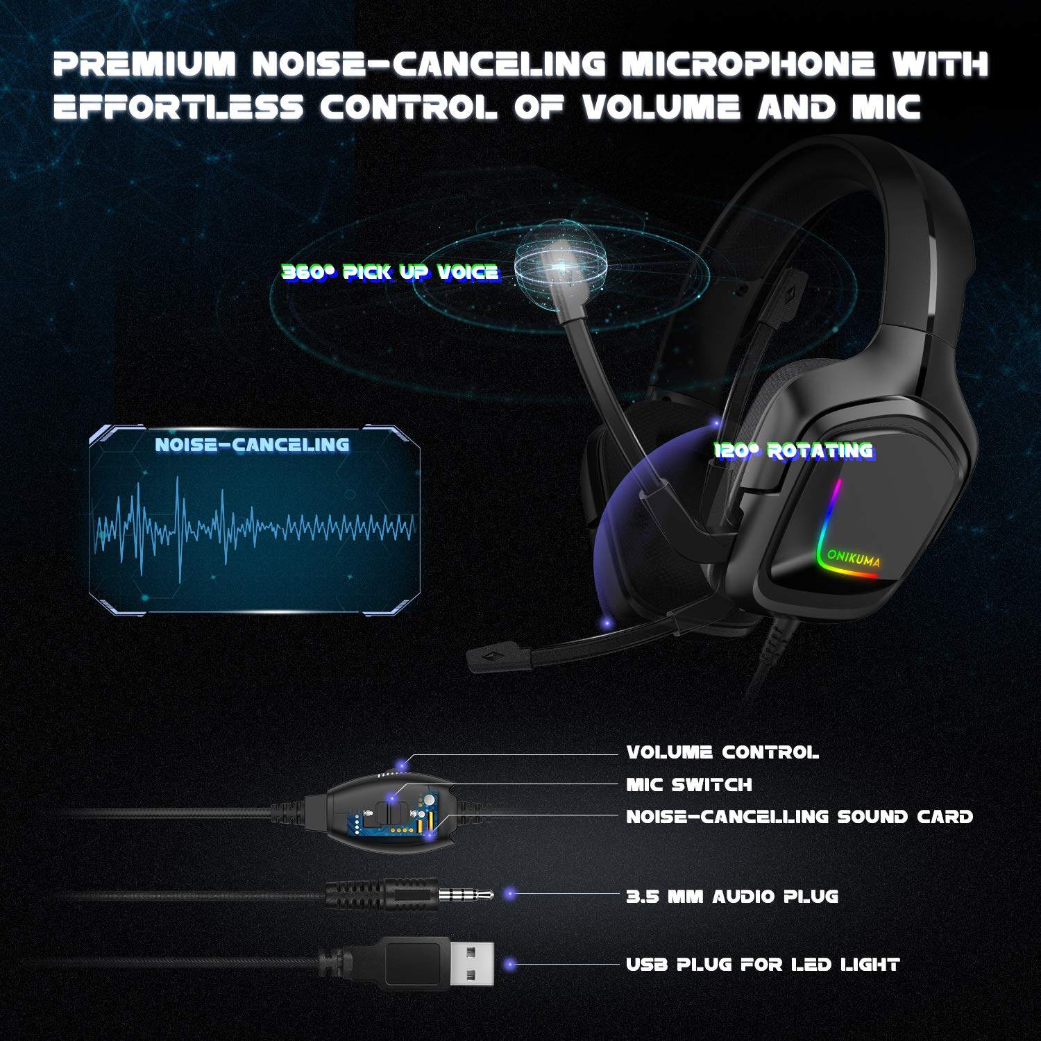 ONIKUMA K20 Gaming Headset with Mic and Noise Cancellation Headphone Gaming with Led Light for Mobile Phone Laptop PS4 PS5 PC XBOX